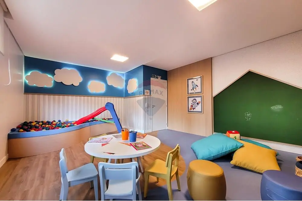 Infraestrutura completa de condomínio: coworking, academia, cinema, lavanderia, área gourmet, espaço pet, brinquedoteca, playground, churrasqueira e piscina.