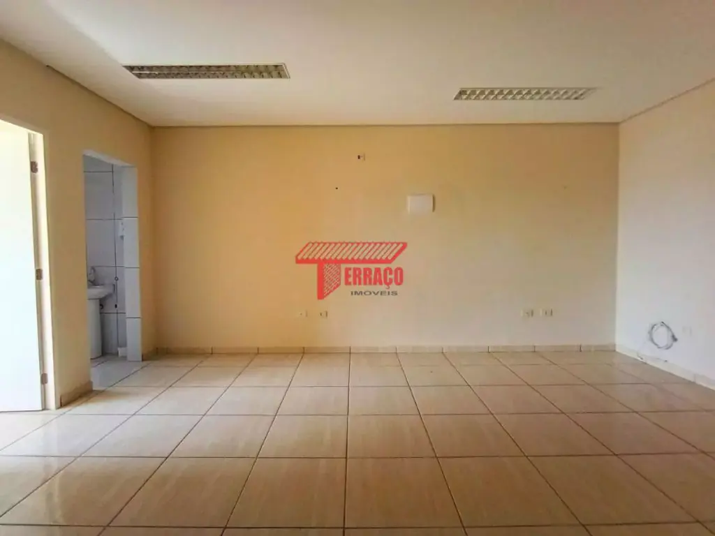 Sala ampla para locação com 40M², 01 banheiro social e piso porcelanato