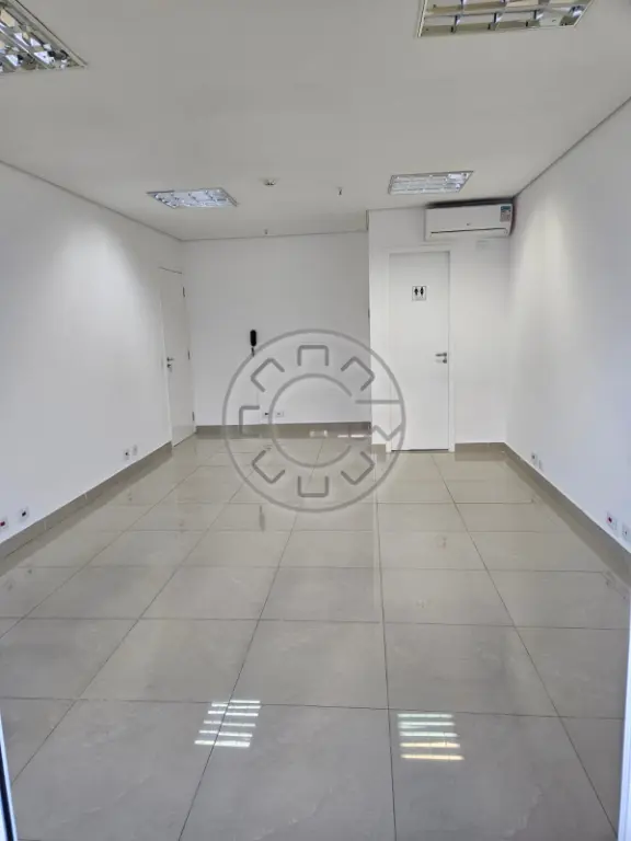 Excelente sala, ampla, arejada e com boa iluminação. Toda revestida em piso porcelanato, ar condicionado e um banheiro. Estacionamento com uma vaga de garagem.