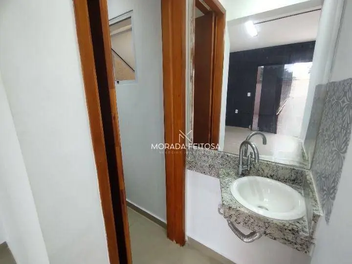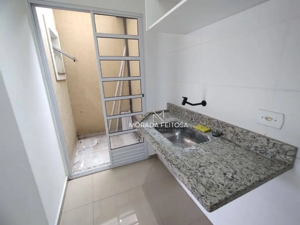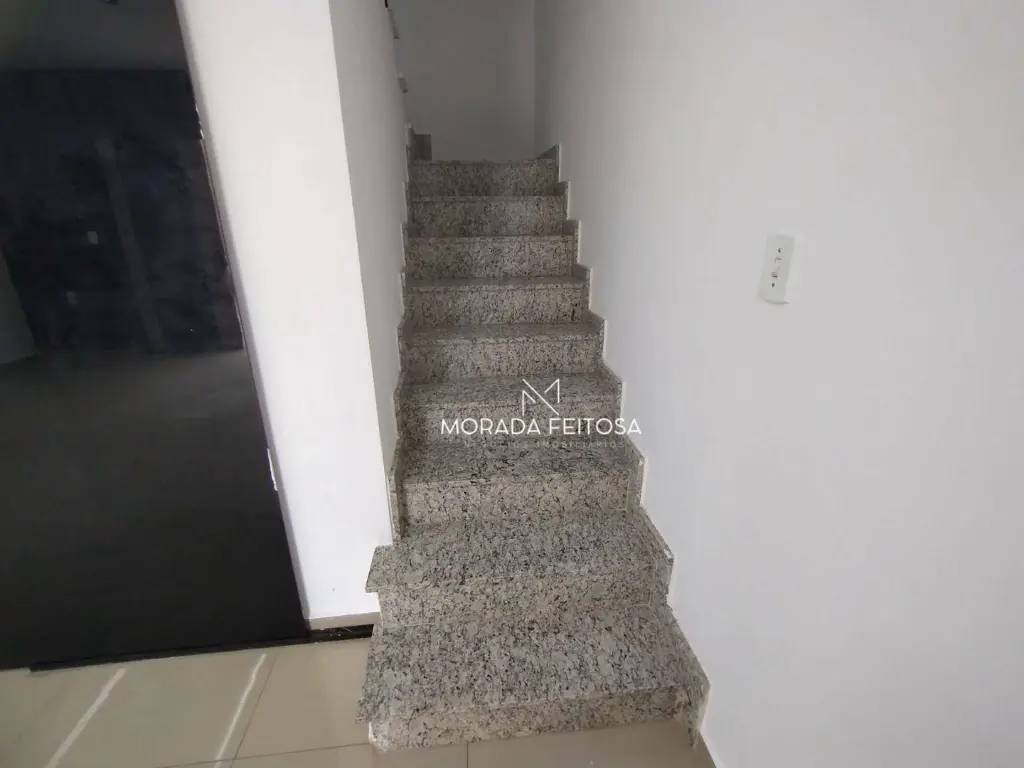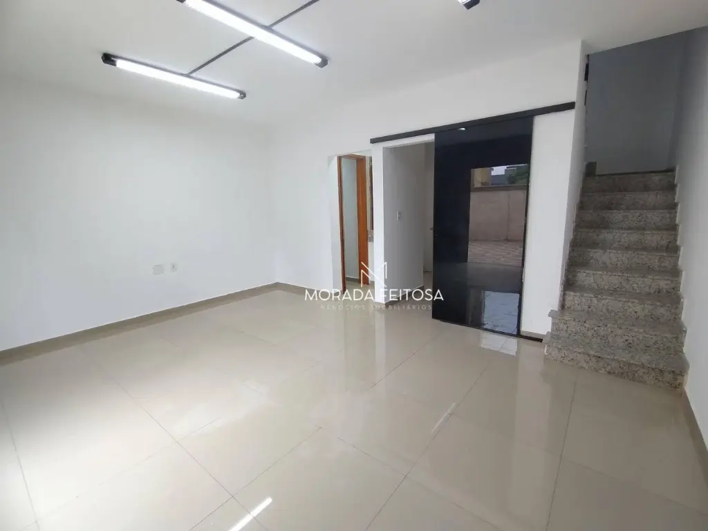 Sala no térreo e segundo piso, escada em granito, piso em porcelanato, com dois banheiros, cozinha com pia e armários, quintal com fechamento retrátil, 2 vagas de garagem cobertas, sistema de alarme sonoro, cerca elétrica, câmeras de monitoramento e reconhecimento facial, interfone.