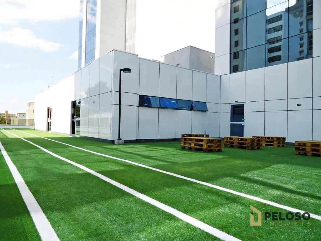 Área comum no térreo e mezanino com salão de convenções com capacidade para 200 pessoas, 2 salas de reuniões de apoio, academia de ginástica da, 2 Sterna café e área de convivência, terraço descoberto com praças e área de descanso.