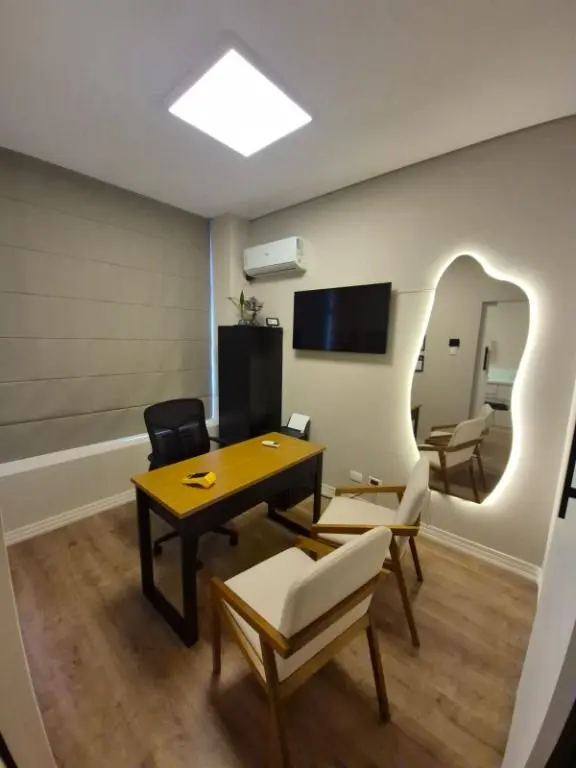 Com *34m² de área total (27m² de área útil)*, o espaço foi cuidadosamente planejado para unir *funcionalidade, conforto e profissionalismo*, proporcionando um ambiente acolhedor e eficiente tanto para atendimento quanto para operação.