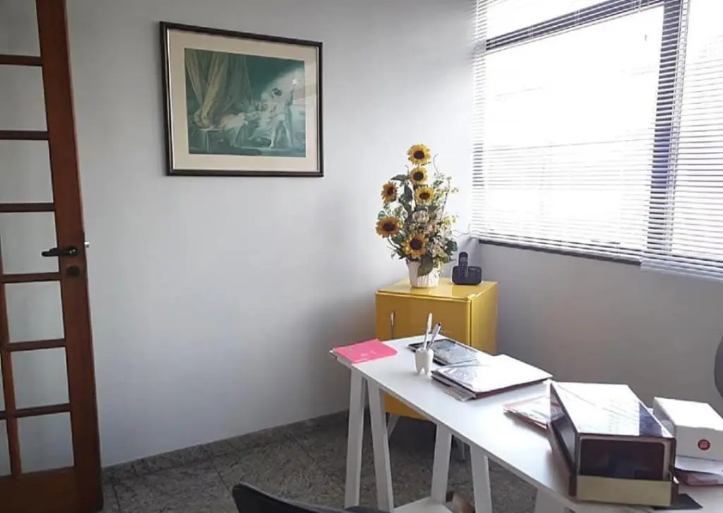 Sala ampla, bem iluminada e funcional