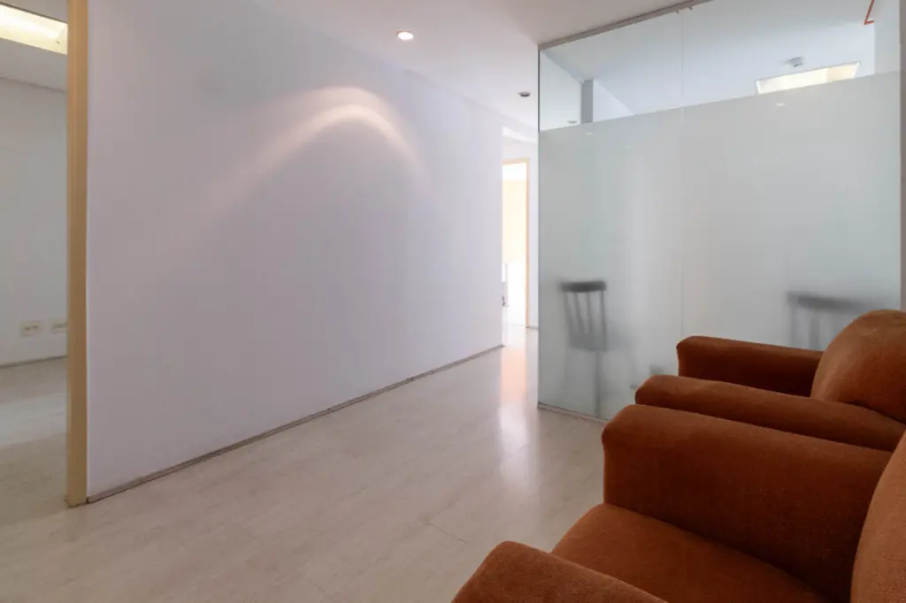A planta é prática e funcional: há uma sala íntima de espera com banheiro, além de outras 4 salas de atendimento independentes, permitindo organização, privacidade e fluxo de clientes.