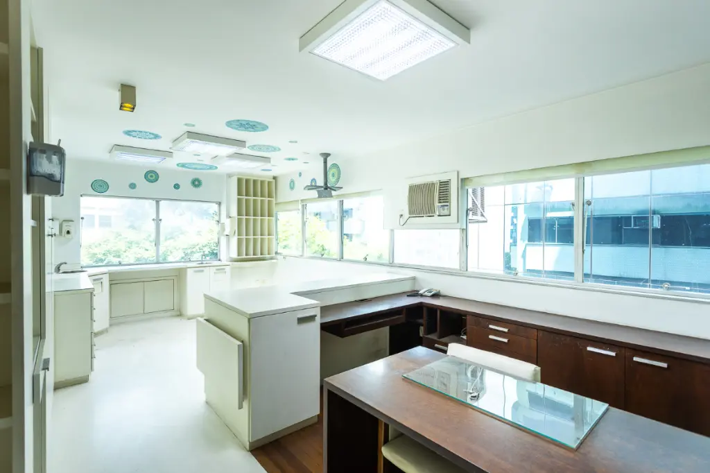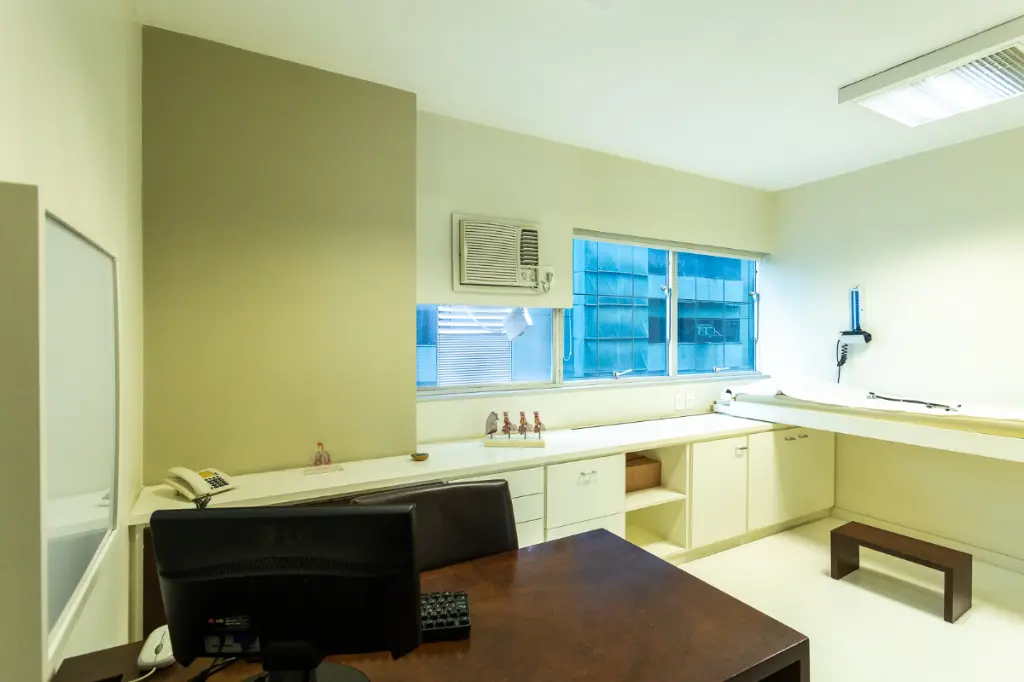 Ao entrar, o espaço impressiona pela recepção bem definida, acompanhada de dois ambientes de espera, proporcionando fluidez no atendimento e excelente experiência para clientes e pacientes. A unidade conta ainda com copa funcional, dois banheiros separados (clientes e funcionários) e três salas independentes de atendimento, hoje utilizadas por especialidades como endocrinologia, odontologia e cardiologia prontas para uso imediato, sem necessidade de grandes adaptações.