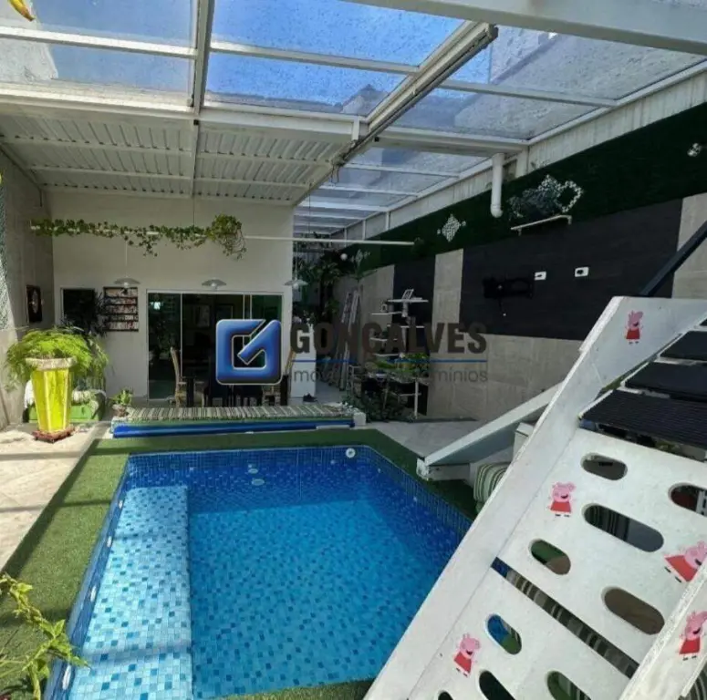 Sobrado com 180M², 03 dormitórios, sendo 01 suíte com armários, sala com 02 ambientes, cozinha planejada, 03 banheiros, área de serviço separada, 03 vagas de garagem cobertas, possui espaço gourmet com churrasqueira, piscina aquecida, aquecimento solar.