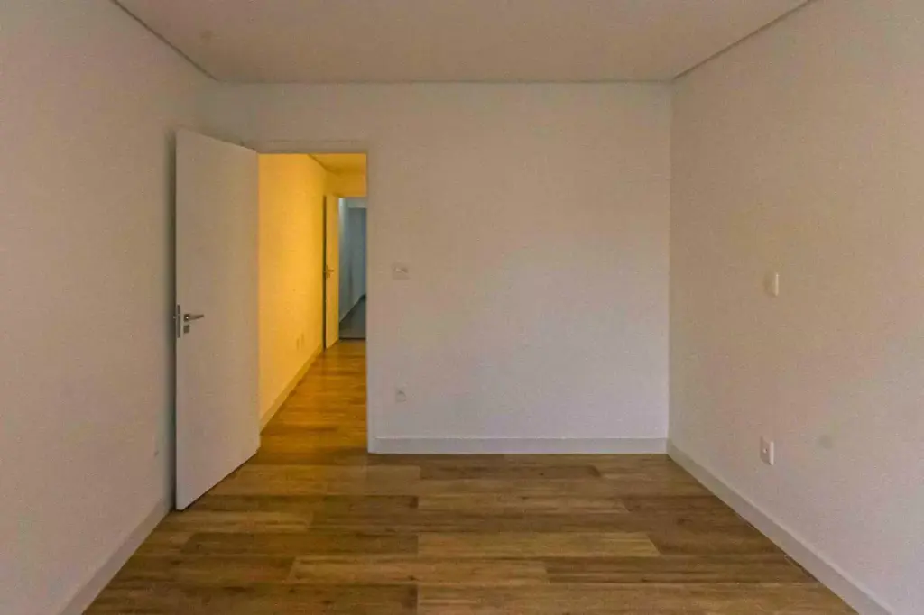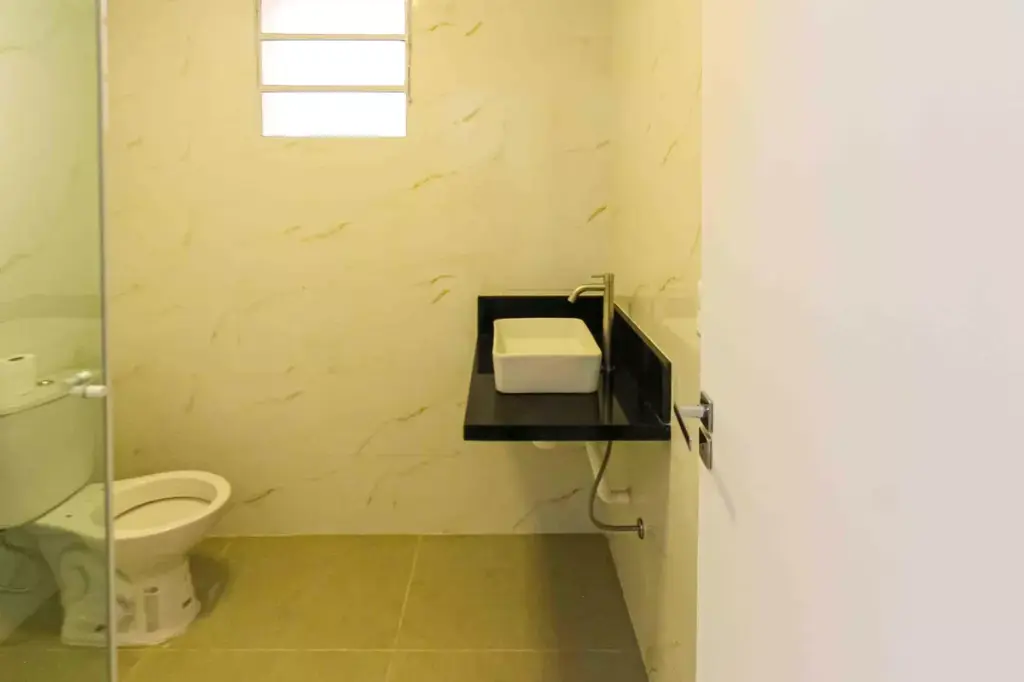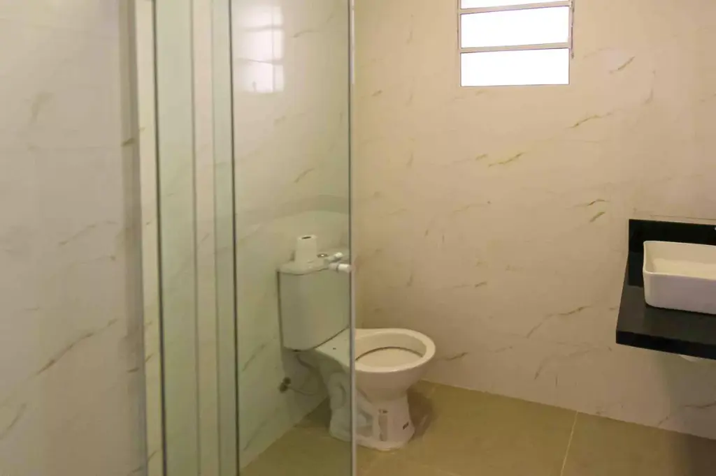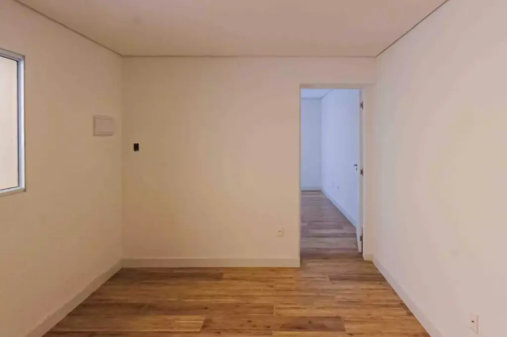 O imóvel conta com 1 dormitório, sendo perfeito para solteiros ou casais. Possui banheiro com box em blindex e já conta com infraestrutura para instalação de ar-condicionado, oferecendo mais conforto térmico no dia a dia.