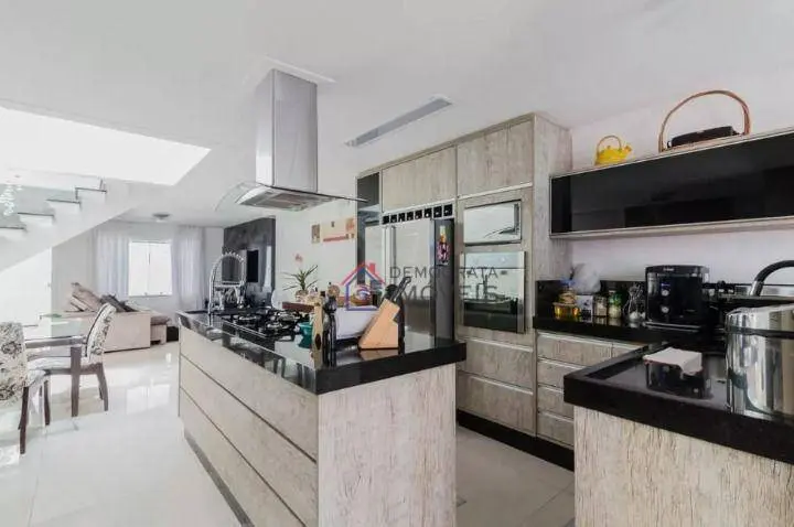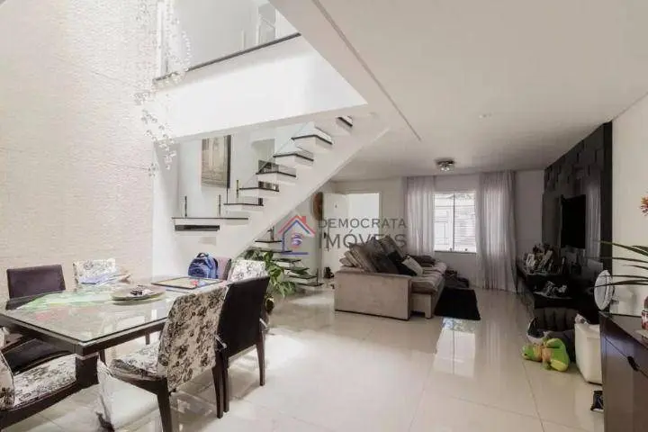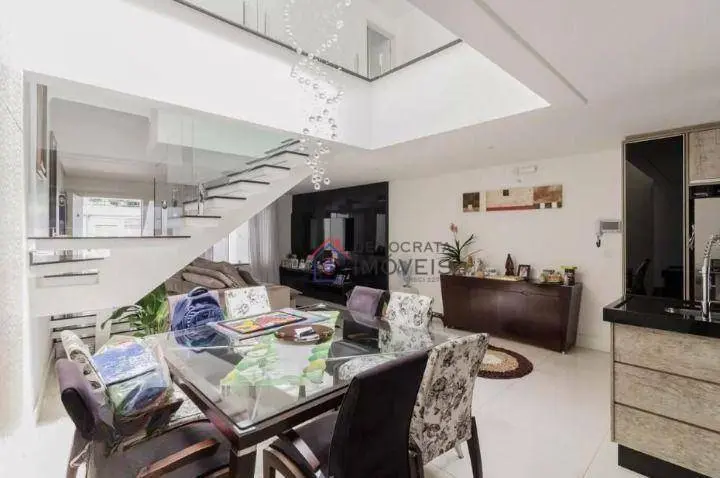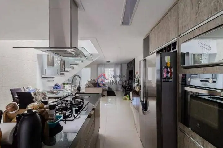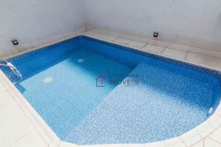 Sobrado com 255m² de área útil. Possui 3 suítes, banheiro social, sala ampla de 2 ambientes, cozinha, área de serviço, espaço gourmet com churrasqueira, piscina e 3 vagas de garagem com portão automático.