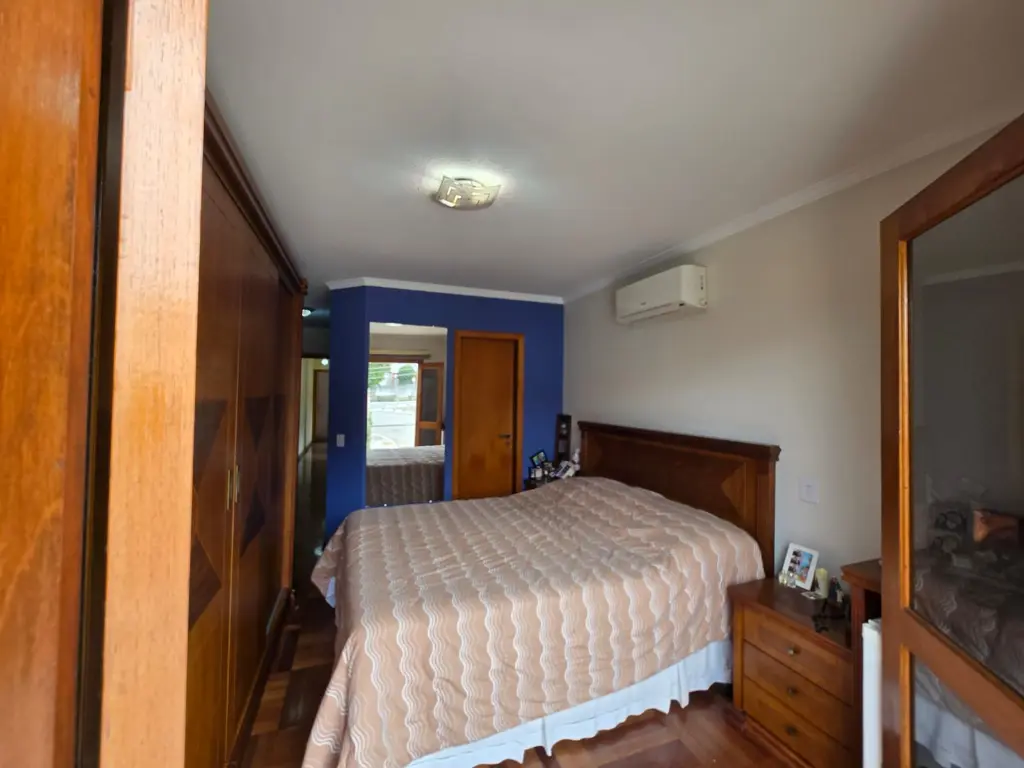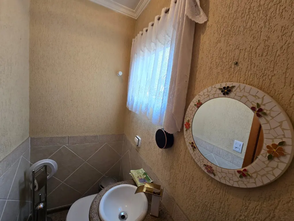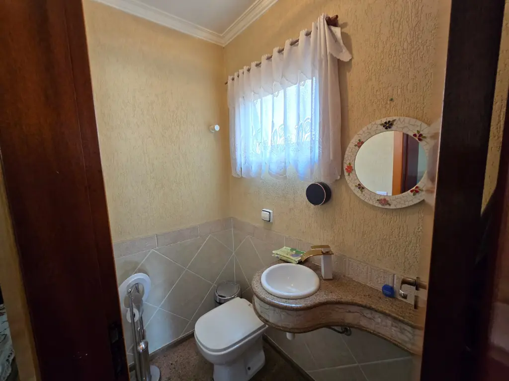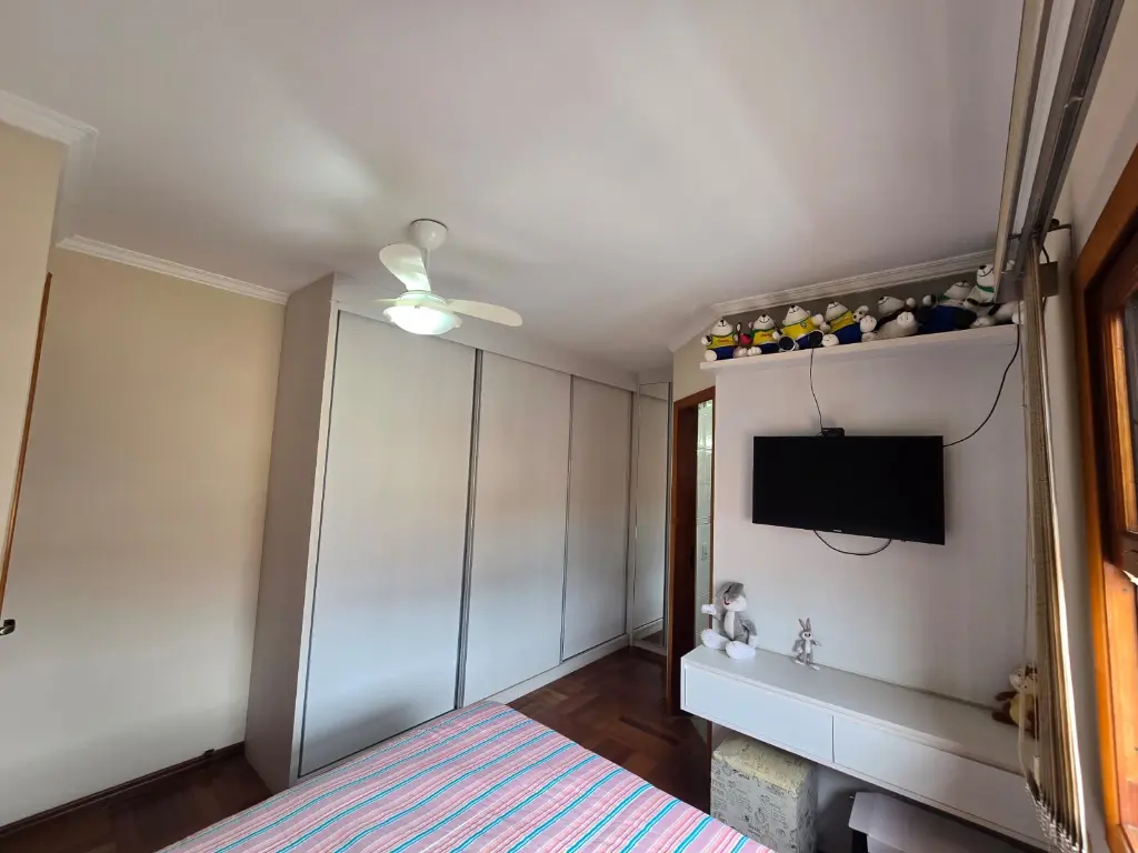 Sobrado com 3 dormitórios com 3 suítes e com sacada, sala 2 ambientes, copa, cozinha, lavabo, lavanderia, quintal com churrasqueira, 4 vagas de garagem, quarto de empregada com banheiro.