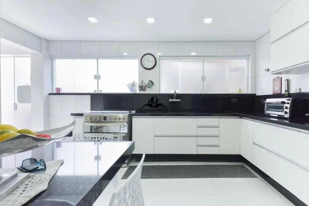 A cozinha, ampla e moderna, é integrada de forma harmoniosa à área gourmet, criando um ambiente propício para experiências culinárias memoráveis.