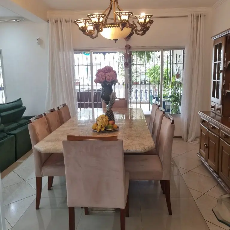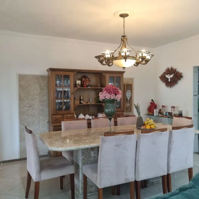 -Sala de jantar com mesa para 8 lugares de mármore.