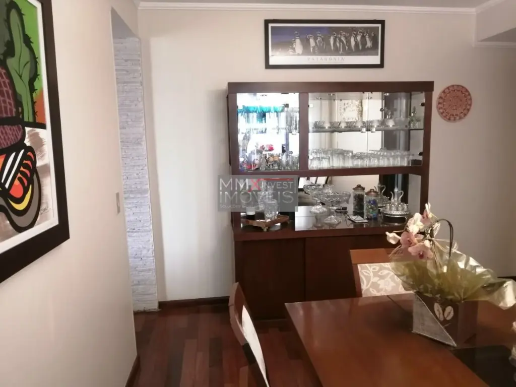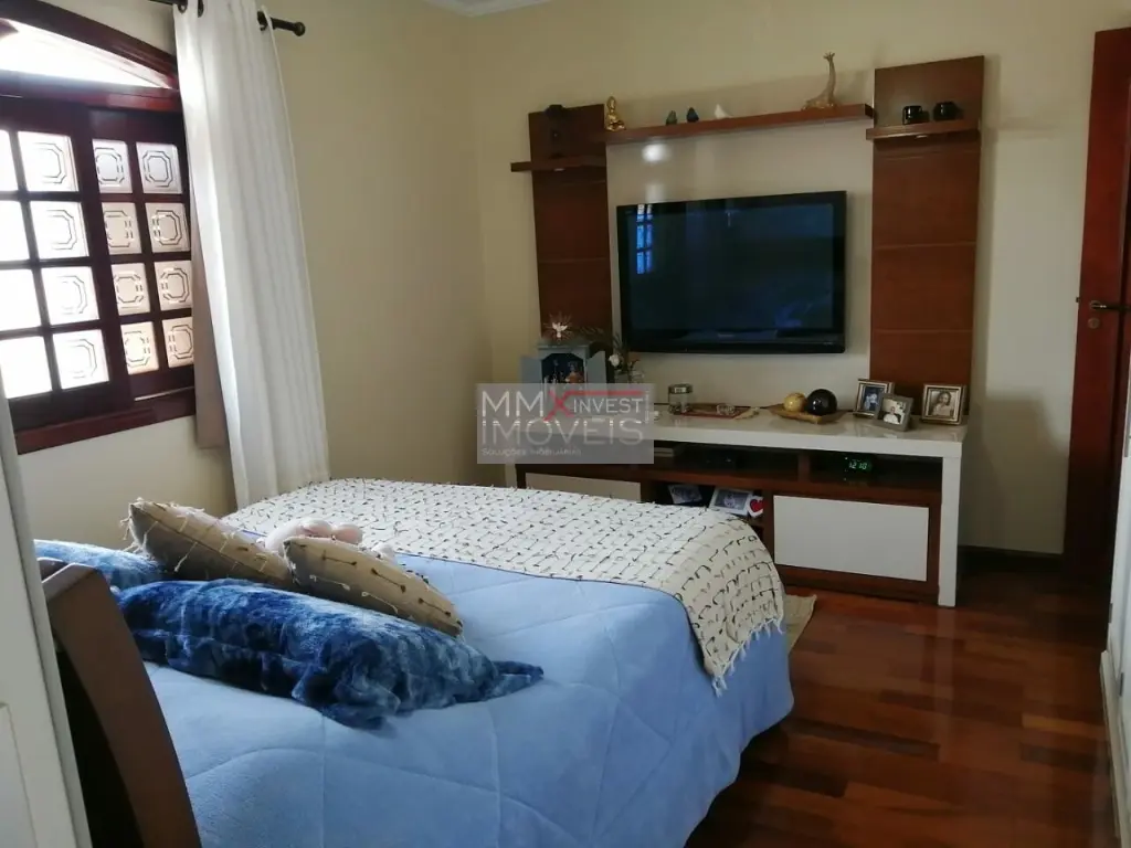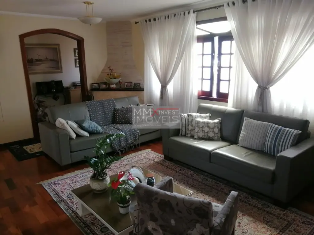 Excelente estado de conservação, materiais de primeira linha, local seguro e tranquilo, são 3 suítes com armários, hidromassagem, closet e varanda, sala TV e estar com lareira, sala jantar, escritório, lavabo, cozinha rica em armários planejados, área de serviço com quarto e banheiro, lavanderia, quintal com jardim, espaço gourmet com churrasqueira, garagem para 6 veículos tipo salão de festas com copa e banheiro, sauna seca, 2 portões automáticos.