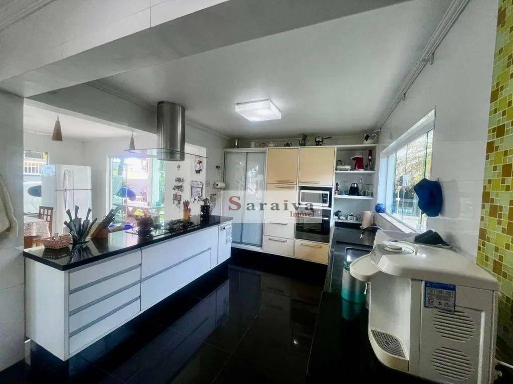 Vende um lindo amplo e moderno sobrado com arquitetura moderna, composto por 4 suítes sendo três com móveis planejados, e 2 com ar condicionado, 6 banheiros, sala 2 ambientes com pé direito duplo, lavabo, cozinha ampla estilo americana e toda planejada, área de serviço, edícula, possui um aconchegante espaço gourmet com piscina com cascata, churrasqueira e 5 vagas de garagem.