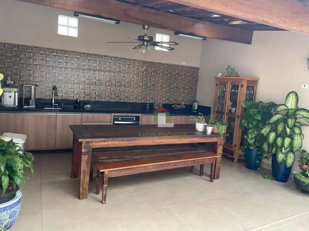 Este imóvel possui 285 metros quadrados de área total e área construída, 4 dormitórios, 1 suíte, 1 banheiro, lavabo, sala ambiente, escritório, 1 sala, varanda, cozinha, e despensa. Já na parte do lazer, este sobrado possui a parte da lavanderia e churrasqueira.