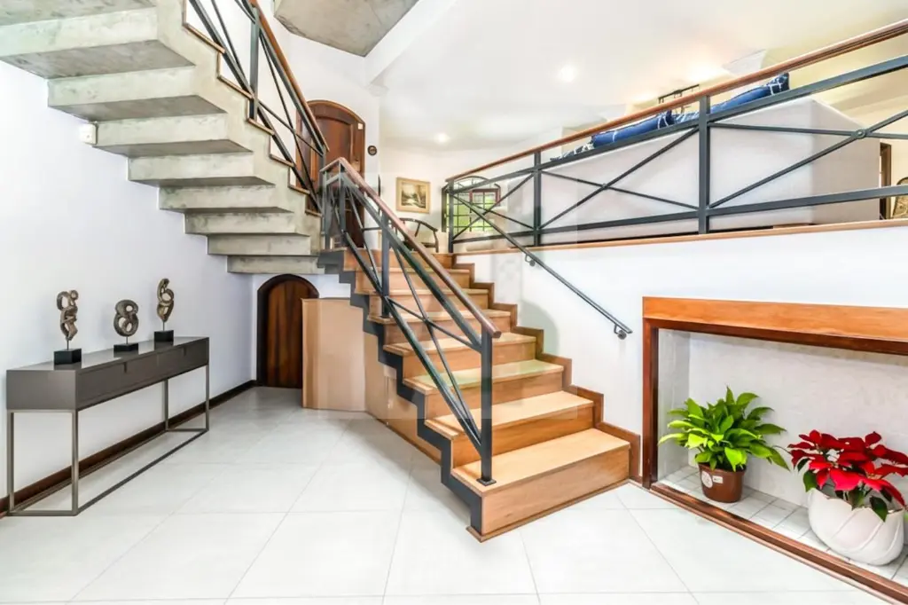 No pavimento íntimo, os quatro quartos, sendo duas suítes garantem privacidade e conforto máximo. A suíte master conta com closet, jardim de inverno e varanda com vista para a Serra da Cantareira, enquanto a segunda suíte oferece varanda privativa. As duas confortáveis suítes atendem familiares e convidados, todas equipadas com armários planejados. A área de serviço completa, a despensa, o escritório e o salão multiuso de 20 m² ideal para ginástica ou hobby agregam praticidade ao dia a dia. No subsolo, um loft aconchegante recebe visitantes, e a garagem abriga até oito veículos com portão eletrônico.