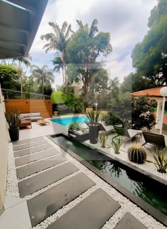 Este sobrado de 610 m² privativos, o mais bonito e melhor conservado da rua, localizado a 50 mts da porta do quartel da Tropa De Choque, do Gate e do Canil da PM, o local mais seguro da cidade de SP, é um convite ao bem-viver: construído em 1995 com linhas clássicas e acabamento refinado, alia ambientes amplos e integrados a detalhes exclusivos. Em seu pavimento principal, as salas se sucedem com elegância incluindo um home theater com piso elevado e sistema de som embutido, um espaço de convivência com lareira e gesso rebaixado, um salão de estar em piso de madeira e um ambiente envidraçado que desce dez degraus até o jardim com piscina. A generosa cozinha, rodeada de janelas, conecta-se ao espaço gourmet e ao quintal, criando o cenário perfeito para receber até 20 pessoas com conforto e sofisticação.