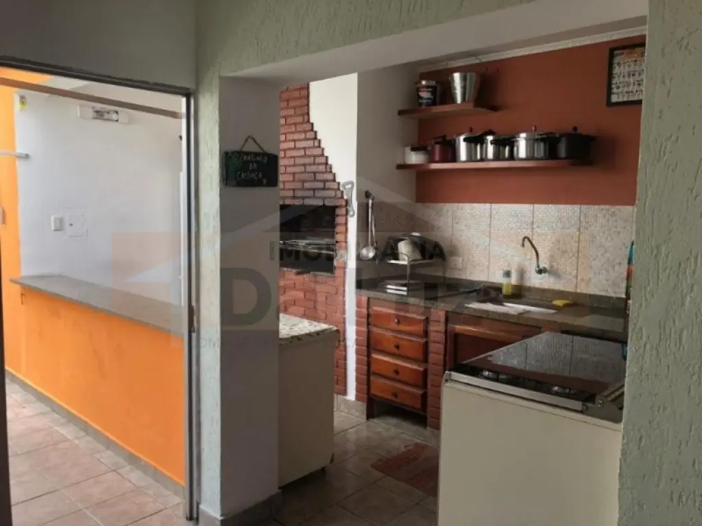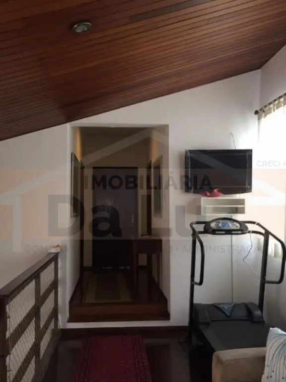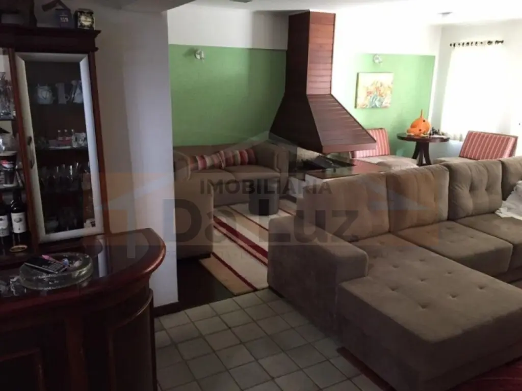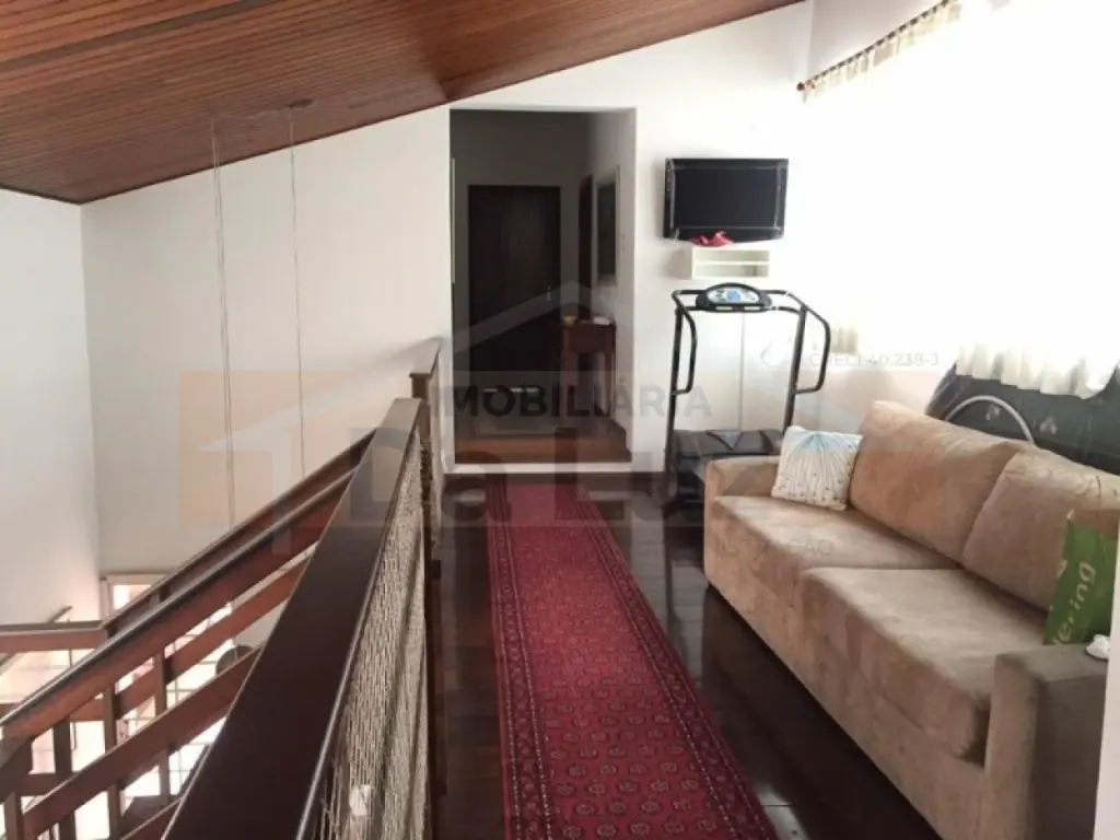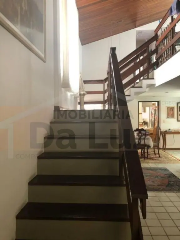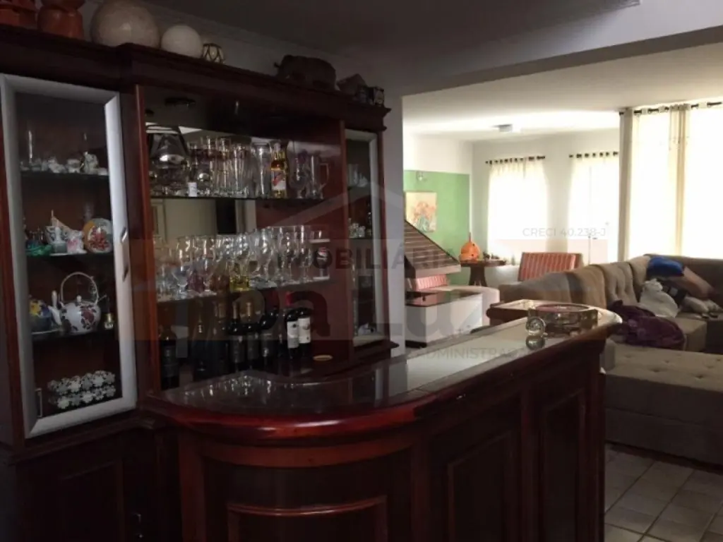 Lindo sobrado alto padrão de 490m², distribuídos em 05 dormitórios, sendo 04 suítes com armários planejados, piso em madeira, banheiros com gabinetes, sala ampla para três ambientes, jardim de inverno, cozinha com armários planejados, lavanderia, dependência para auxiliar, Solarium, salão de festas com churrasqueira, 07 vagas de garagem, sendo 04 cobertas e uma bela entrada com jardim.