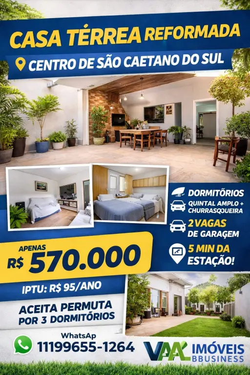 ?? CASA TÉRREA NO CENTRO DE SÃO CAETANO DO SUL - TOTALMENTE REFORMADA