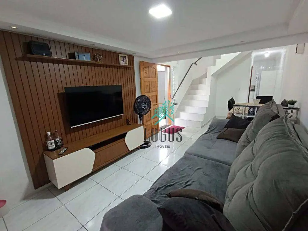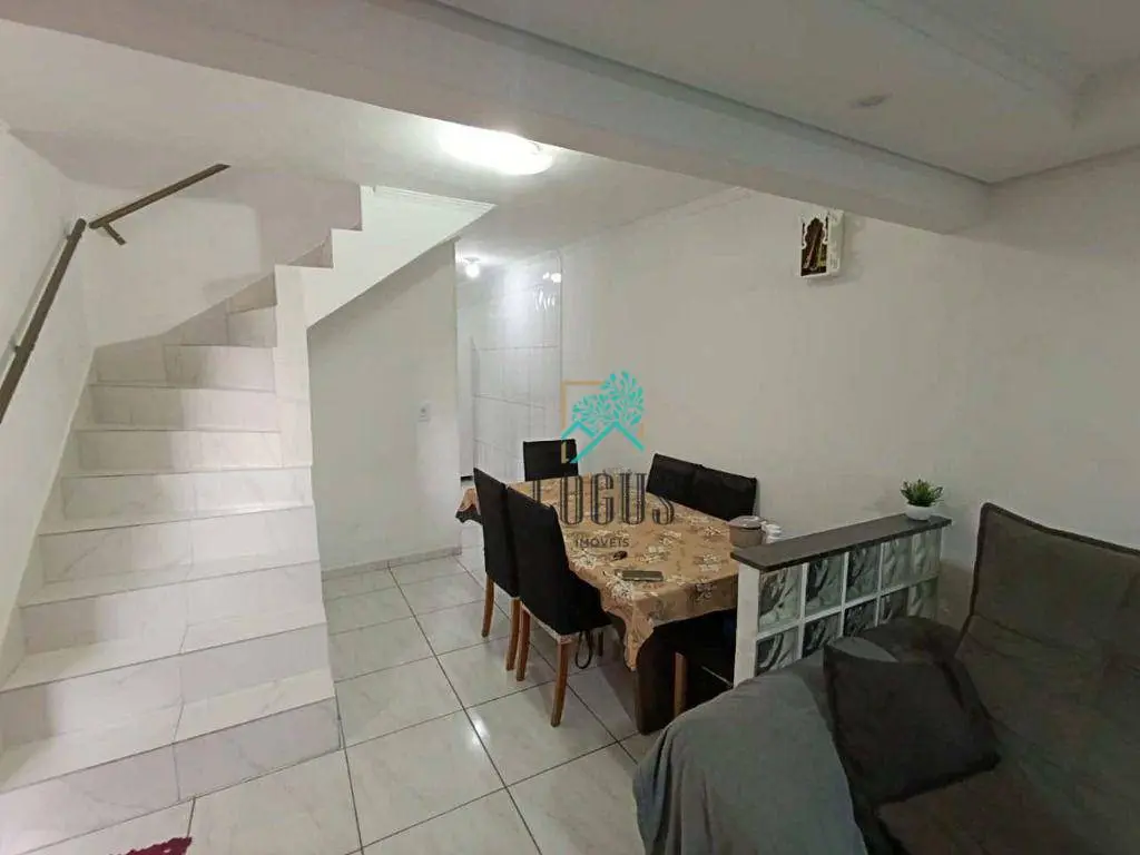 Sobrado com corredor lateral, com iluminação natural e bem arejado, Dispõe de um belo acabamento em todos os cômodos com piso cerâmico e porcelanato na parte inferior.