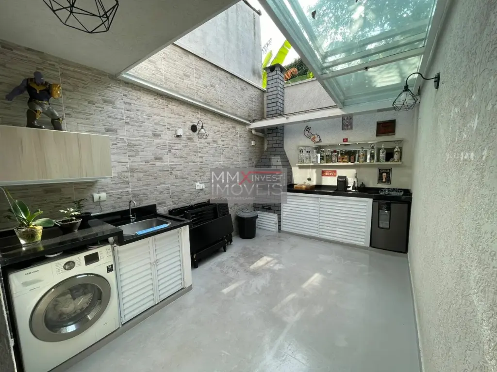 A área gourmet é um destaque, equipada com churrasqueira e uma cobertura retrátil para aproveitar em todas as ocasiões.