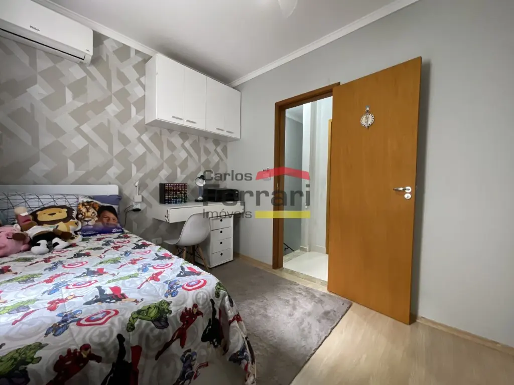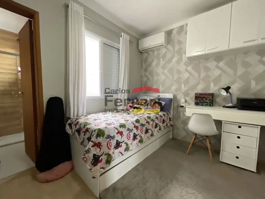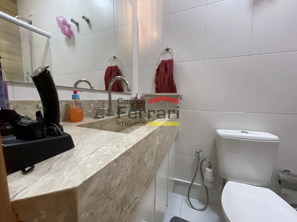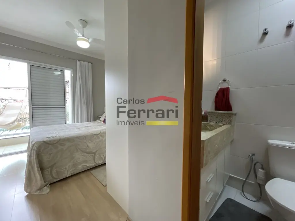 O imóvel conta com 2 suítes, ambas com armários embutidos, além de lavabo.
