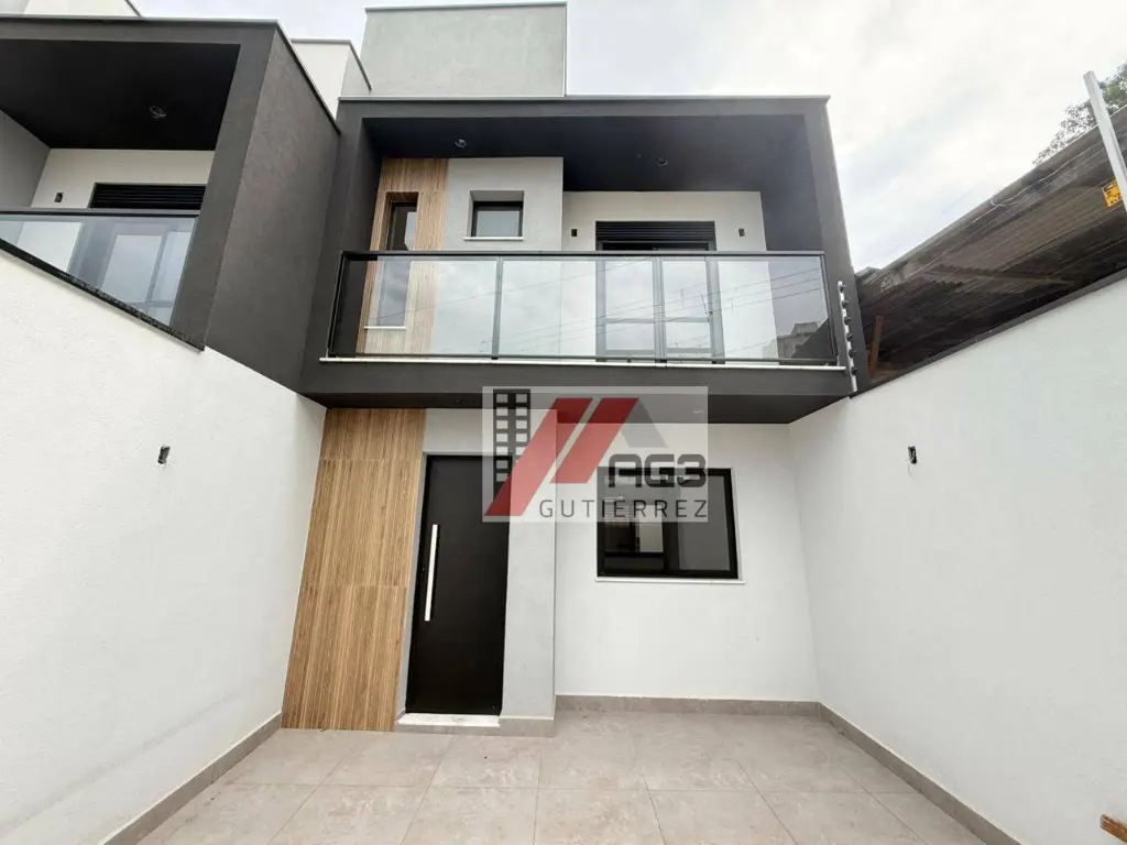 Excelentes sobrados novos com 70m² de área privativa, distribuídos em dois dormitórios sendo os dois suítes (os dois banheiros com ventilação natural) e a principal com uma varanda, duas vagas de garagem com portão automático, sala ampla para dois ambientes com excelente iluminação e ventilação natural, lavabo e cozinha integrada com a sala e estrategicamente posicionada ao lado do quintal que comporta a área gourmet e área de serviço.