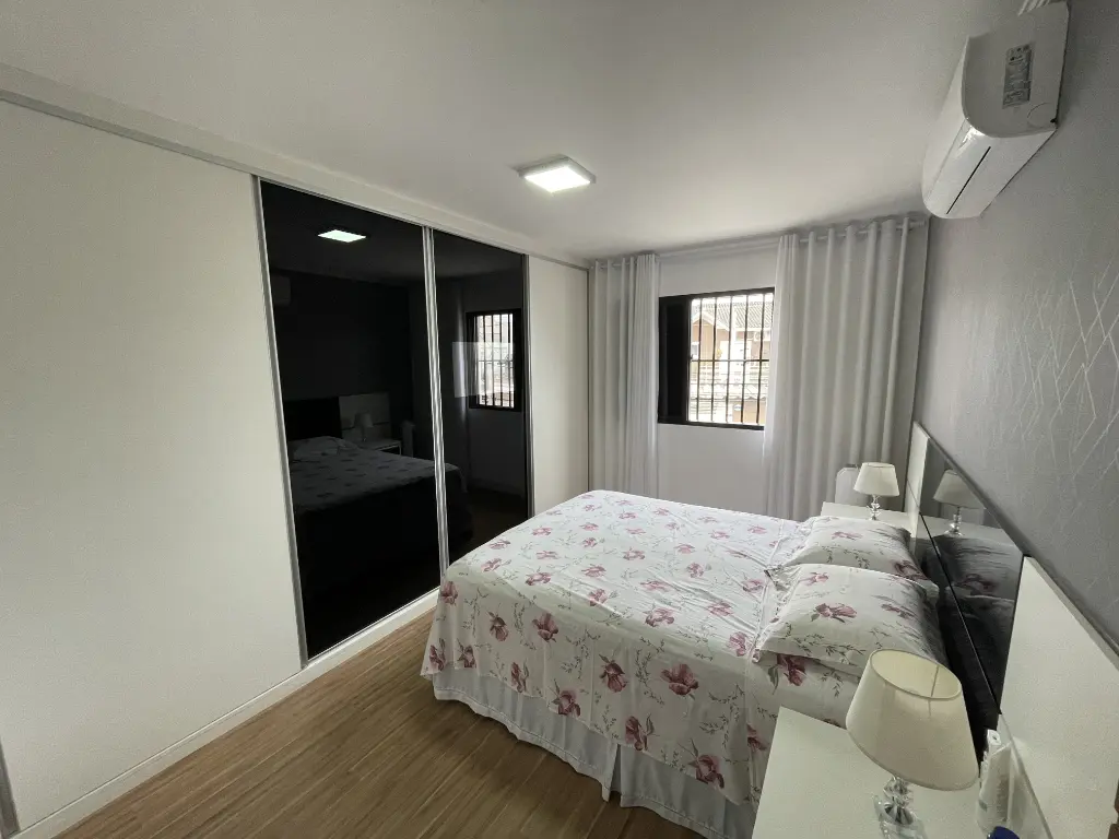 2 dormitórios amplos, com armários embutidos e piso de madeira, garantindo charme e conforto.