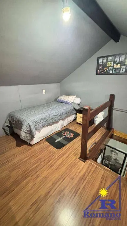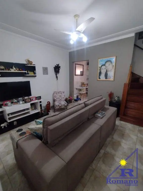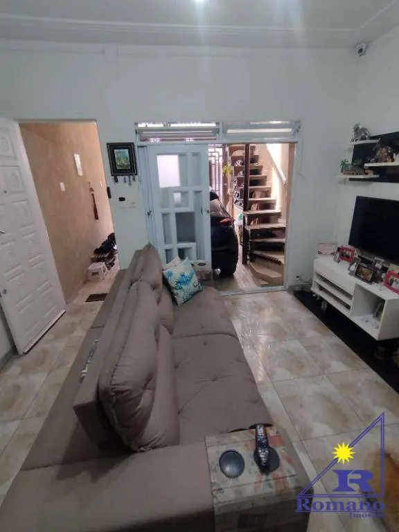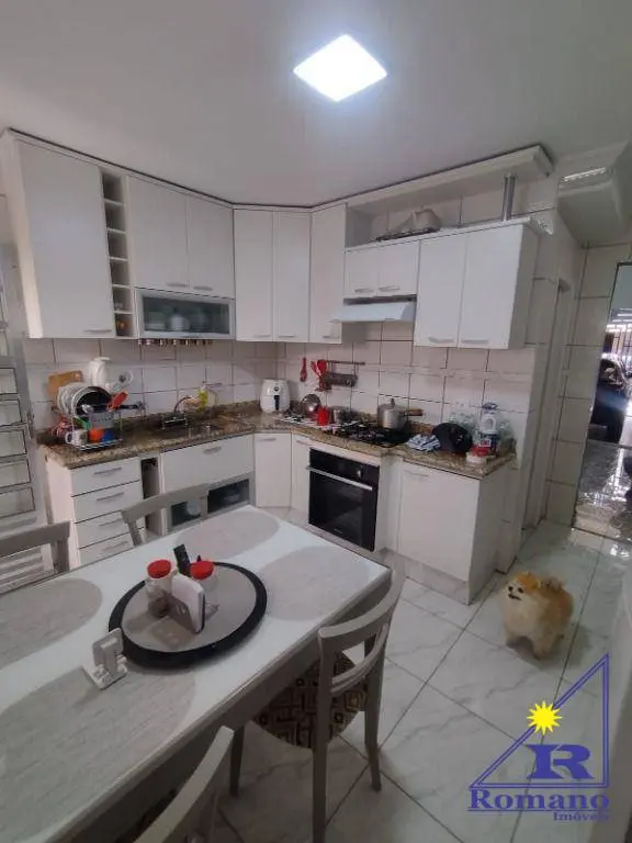Sobrado aconchegante, com sala, cozinha com armários planejados e cooktop, banheiro, área de serviço e pequeno quintal com churrasqueira no térreo. No 1º andar conta com 2 dormitórios com armários planejados, sendo 1 suíte com ar condicionado, banheiro social e terraço, e no 2º andar possui mais 1 dormitório.