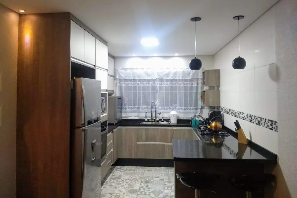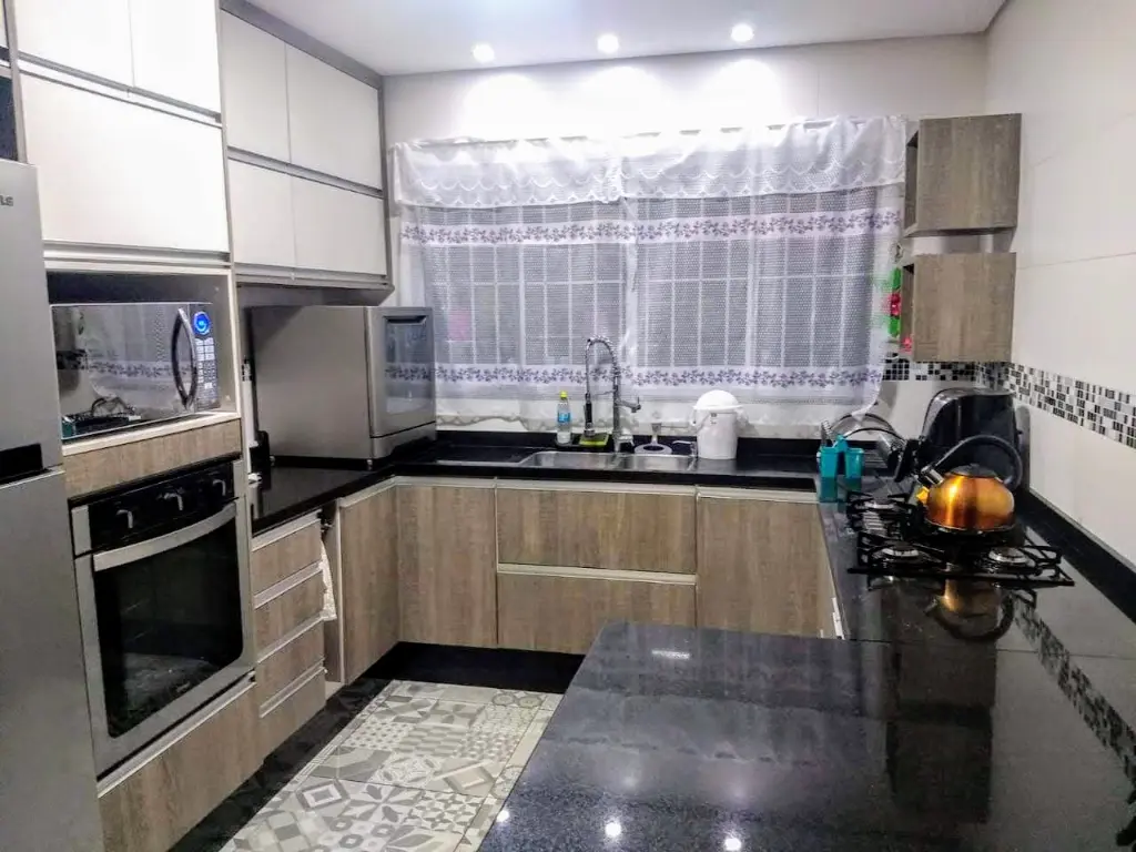 Lindo sobrado 136 mts 3 dormitórios, ampla sala 2 ambientes, cozinha com moveis planejados, piso laminado, piso porcelanato, 2 vagas de garagem, excelente localização proximo aos principais pontos comerciais e transporte públicos.