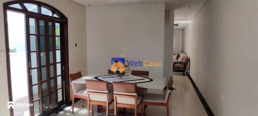 Sobrado com 3 dormitórios, sala, cozinha, copa, 4 banheiros, 5 vagas de garagem, área nos fundos com churrasqueira e pia.