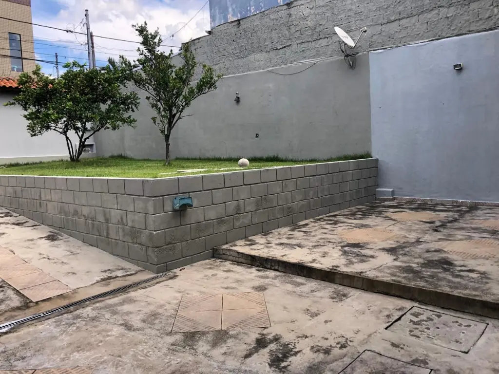 Amplo quintal com jardim, ideal para momentos de lazer ou futuras ampliações