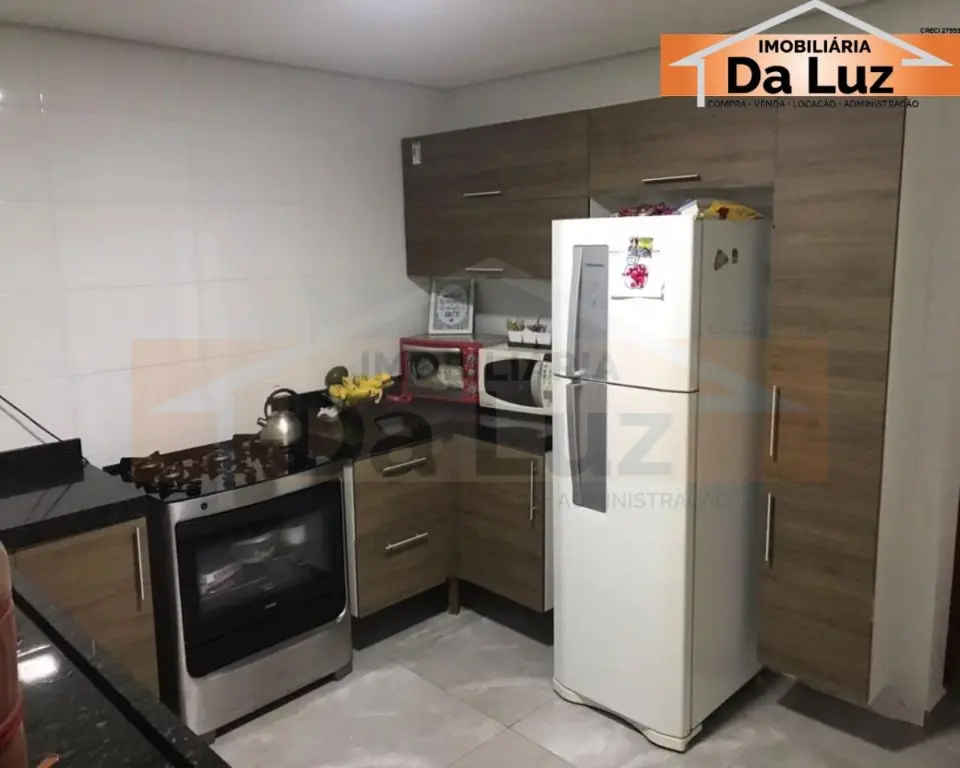 Sobrado novo, com 3 dormitórios, 1 Suíte com sacada, Sala para dois ambientes, Lavabo, Cozinha com armários planejados, Lavanderia, Quintal, no piso superior área gourmet com amplo espaço, infra estrutura para churrasqueira. O acabamento com piso porcelanato, box de vidro blindex, cuba com tampo de mármore black, piso laminado, janelas em esquadria cor White e portão automático.