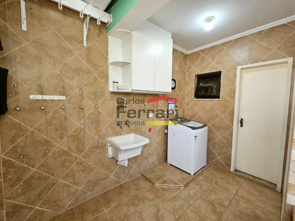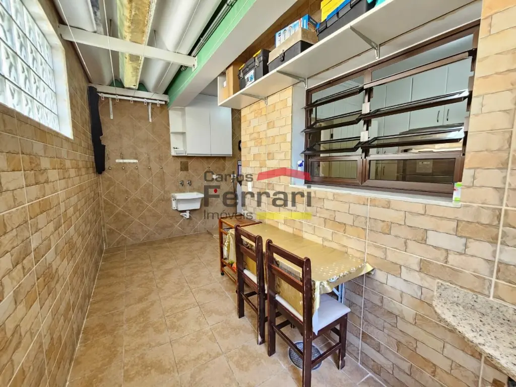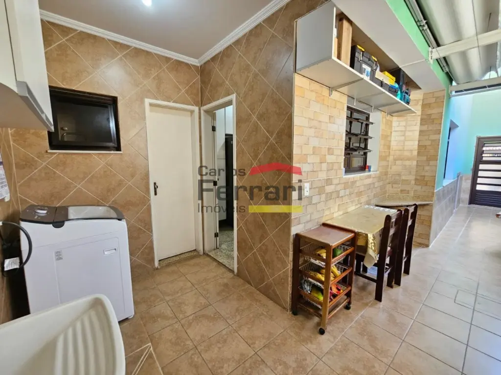 Área de serviço com armários e entrada lateral;