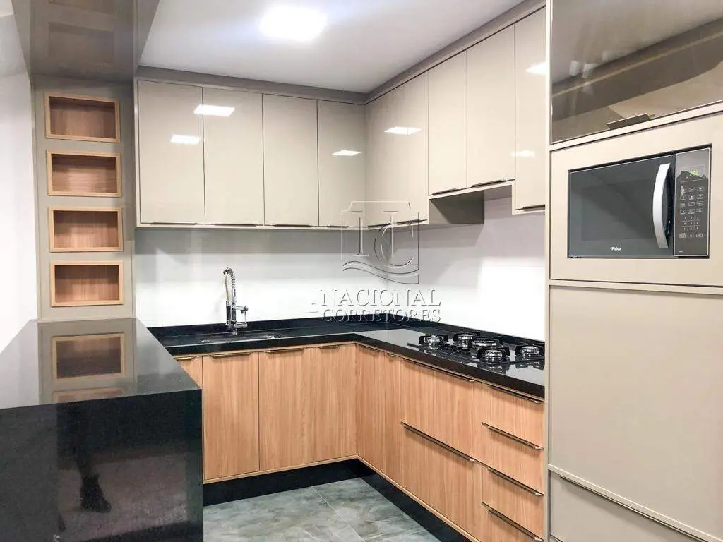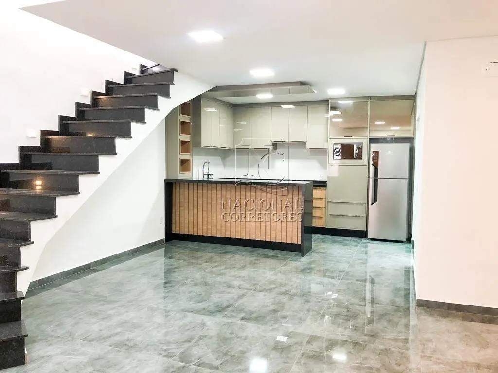 Excelente sobrado para venda no Parque das Nações - Santo André - SP com 163m² de área construída, pensado para quem busca conforto, modernidade e segurança. São 3 dormitórios, sendo 1 suíte com armários planejados. O dormitório dos fundos também conta com armário planejado, painel de TV e cabeceira. Banheiro social completo, com gabinete, espelho e box de vidro. Localização privilegiada, próximo à Coop do Parque das Nações e à Rua Oratório. CÓD 48141. A escada em granito possui spots de iluminação e teto com iluminação natural, trazendo ainda mais sofisticação ao ambiente. A sala é ampla, com painel planejado e lindo jardim vertical, em conceito aberto integrada à cozinha, que dispõe de armários planejados, bancada ampla com cooktop, torre quente e geladeira. Área de serviço coberta com telhado retrátil, lavabo e garagem para até 2 carros com portão eletrônico. O imóvel ainda conta com espaço preparado para instalação de pia e churrasqueira. Para sua segurança e conforto, conta com: Cerca elétrica, Sistema de monitoramento e Infraestrutura pronta para ar-condicionado A Nacional Corretores é referência em venda, locação e administração de imóveis residenciais e comerciais no ABC Paulista, especialmente em Santo André. Contamos com uma equipe especializada, pronta para oferecer o melhor atendimento. Agende sua visita com um de nossos corretores e venha conhecer seu novo lar!
