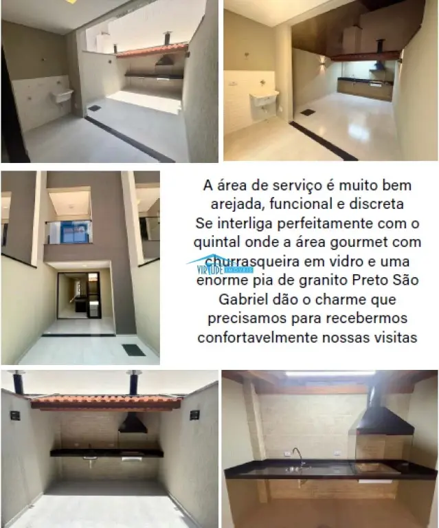 Excelente sobrado novo com sala ampla, 150m2 de área, 3 suítes sendo 2 com varanda, 3 vagas sendo 2 cobertas, Área Gourmet com quintal e churrasqueira, Acabamento de altissimo padrão, Iluminação em led na casa toda, Infraestrutura para ar condicionado pronta, Entregue com toda segurança de cerca elétrica, concertina e fechadura eletrônica. A cozinha se destaca por uma grande pia e uma bela ilha em granito Preto São Gabriel iluminadas por perfis de led modernos e um toque especial com este revestimento canelado Olive Green. área de serviço é muito bem arejada, funcional e discreta. Se interliga perfeitamente com o quintal onde a área gourmet com churrasqueira em vidro e uma enorme pia de granito Preto São Gabriel dão o charme que precisamos para recebermos confortavelmente nossas visitas. A sala de estar conjugada à sala de jantar torna o ambiente muito amplo e bem iluminado, proporcionando conforto e fácil circulação. A suíte master é a maior em medidas e também conta com um banheiro confortável e a porta balcão com persiana integrada, além da varanda de frente para a rua que demonstra este belíssimo porcelanato azul petróleo iluminado por lindos perfis de led . O sobrado dispõe de 3 vagas de garagem sendo 2 cobertas, além de portão basculante automatizado com motor, trava de segurança e fechadura eletrônica.