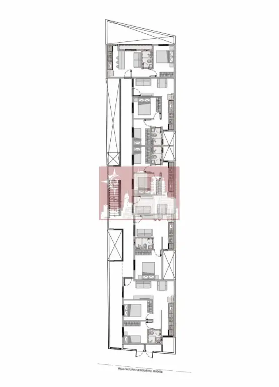 Existe um projeto aprovado para 14 apartamentos, sendo 8 com 2 dormitórios e 6 com 1 dormitório.