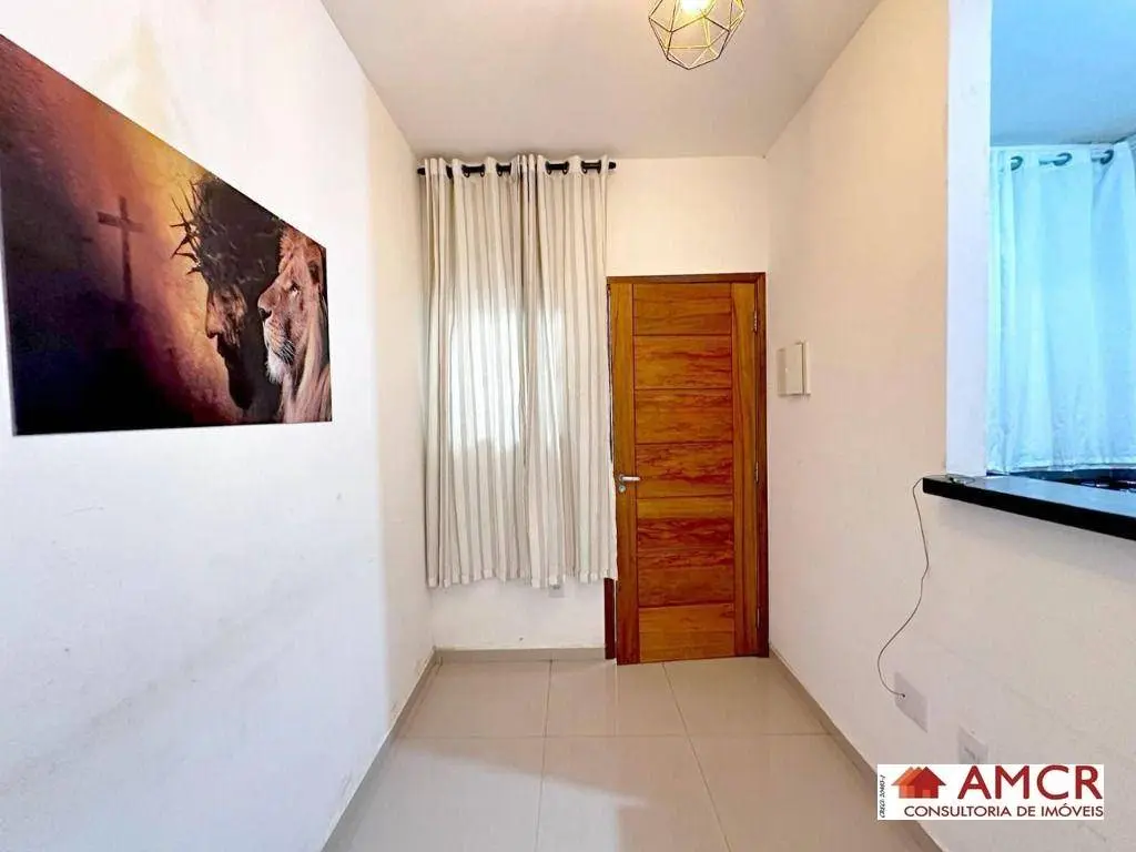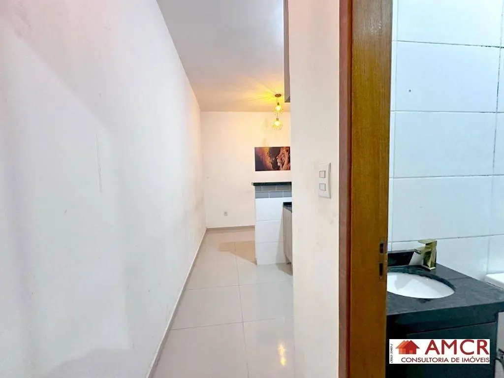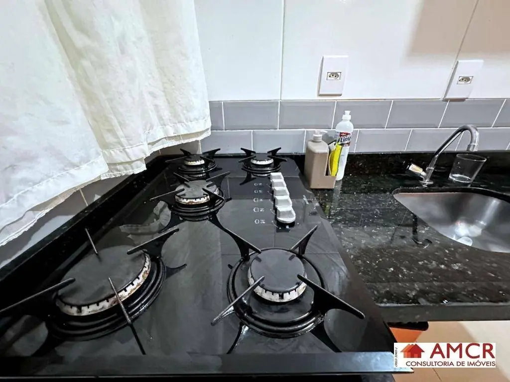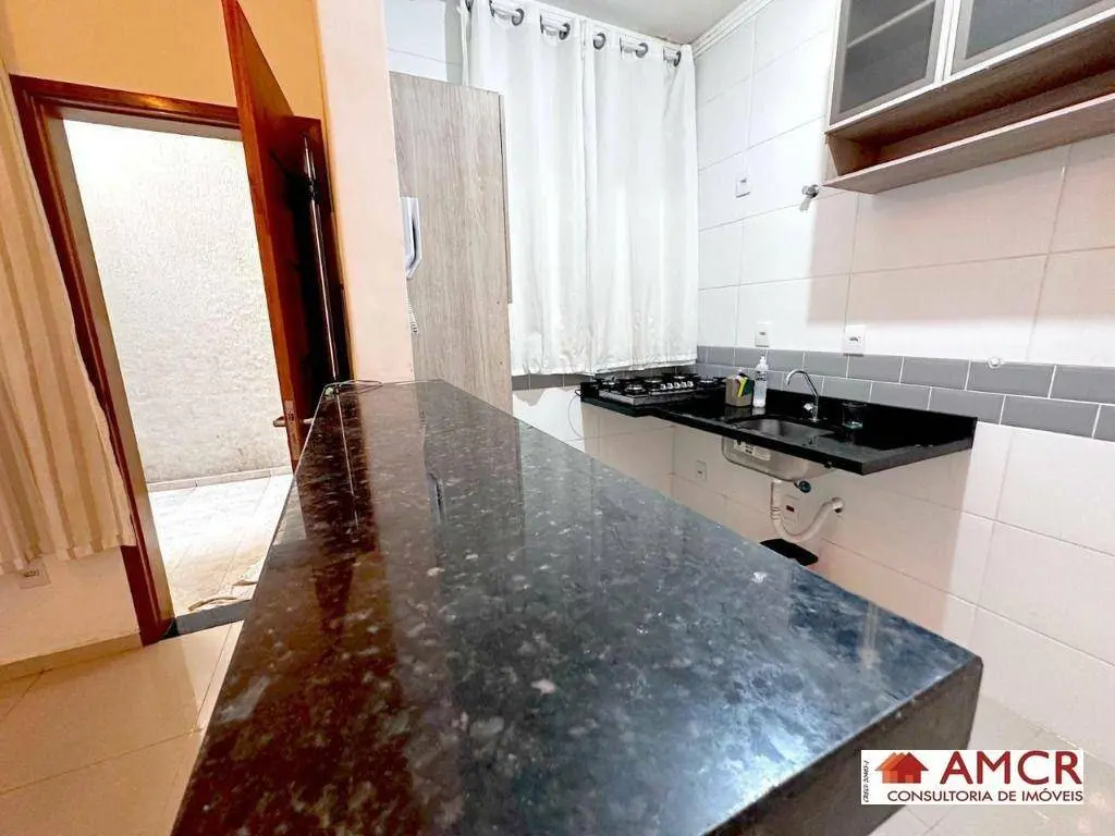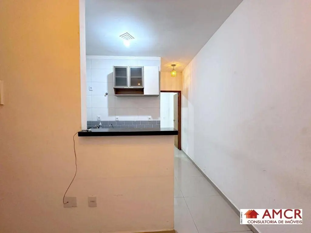 Apartamento de 30 m², com 2 dormitório, sala, cozinha com armário, gabinete, balcão e fogão, área de serviço.