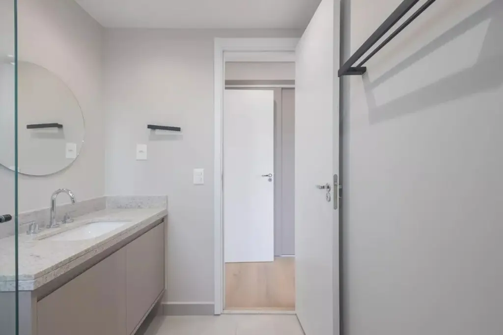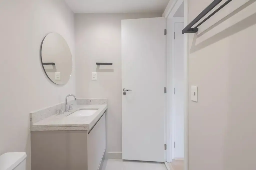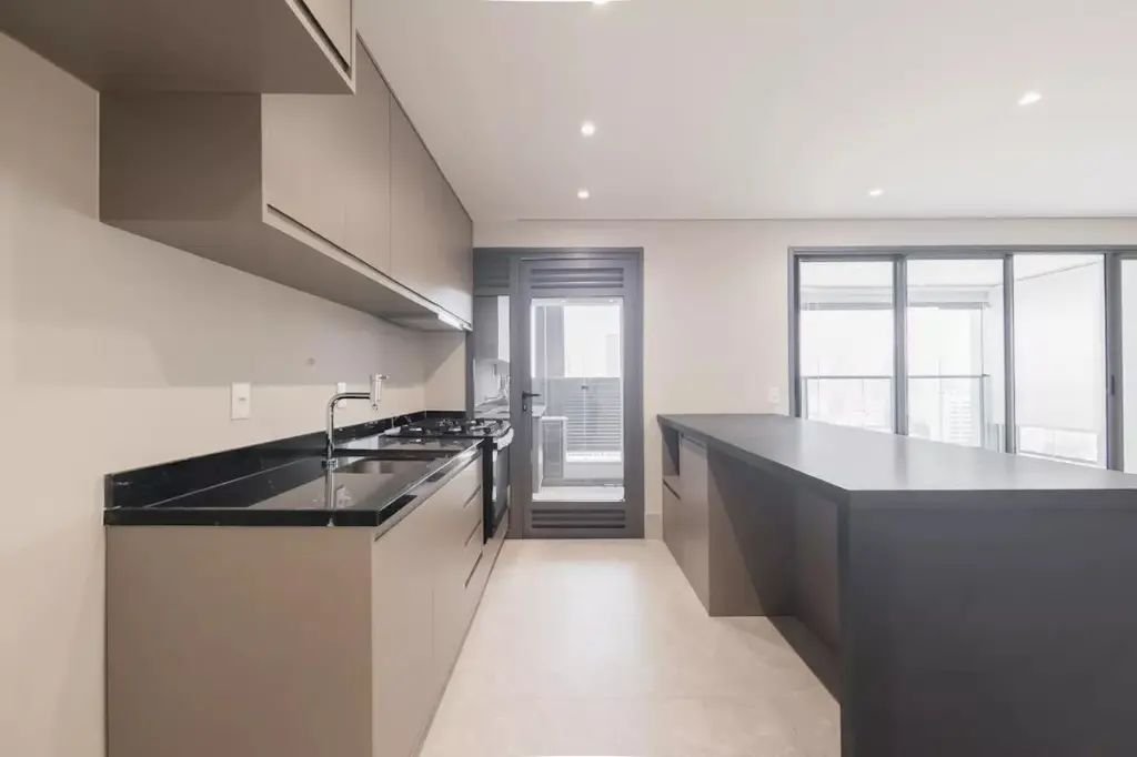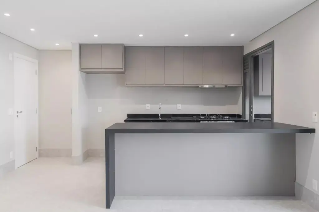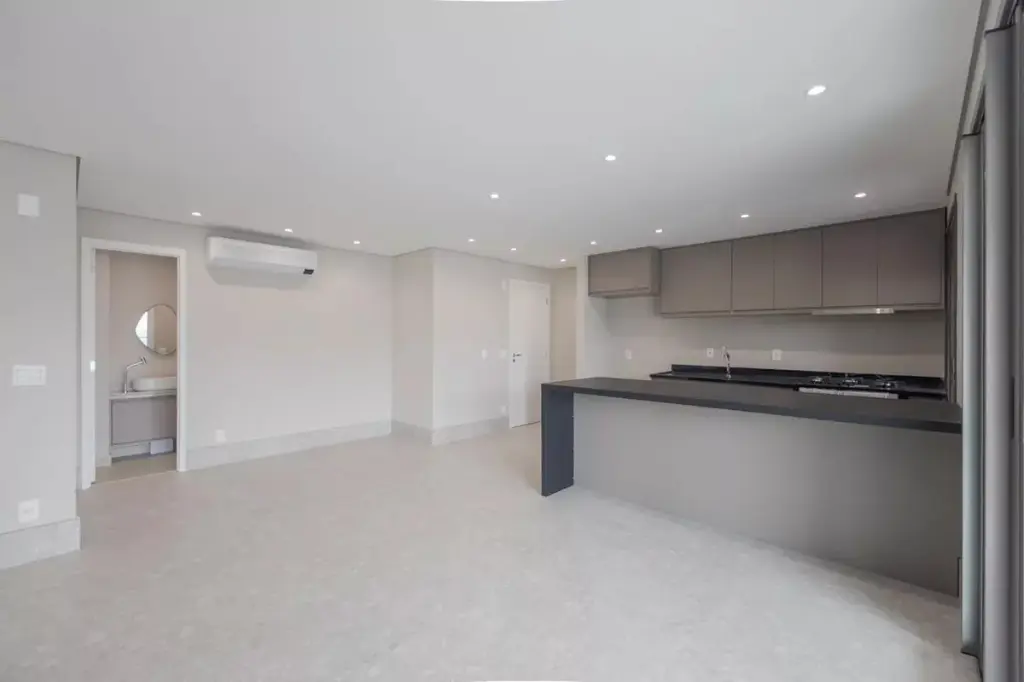 Viva o melhor de Pinheiros um apartamento com ótima planta, com 2 suítes com ar-condicionado, cozinha americana com armários e bancada, área de serviço com marcenaria sob medida, sala com ar condicionado e varanda gourmet com fechamento em vidro e churrasqueira à carvão.