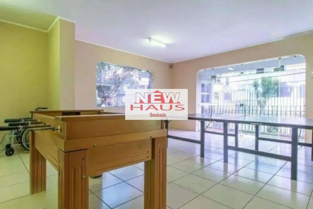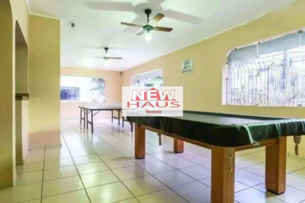 Lazer com salão de festas, playground, quadra poliesportiva, salão de jogos.