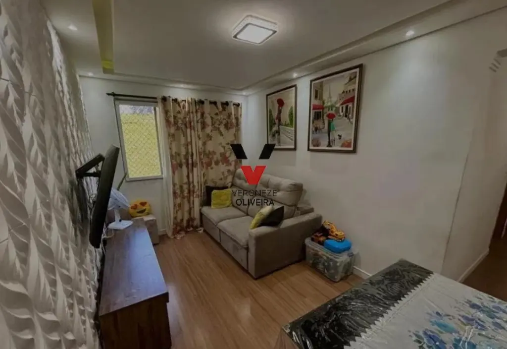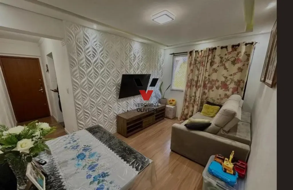 Apartamento com 02 dormitórios, sala ampla com 02 ambientes, cozinha espaçosa, 01 banheiro, área de serviço e 01 vaga de garagem.