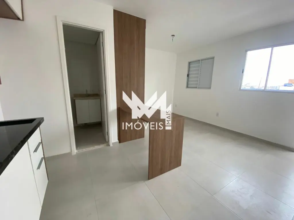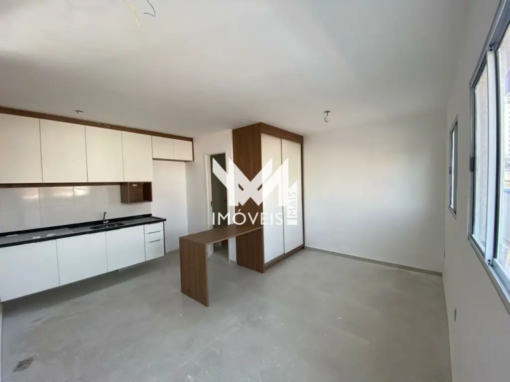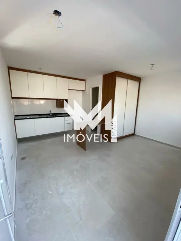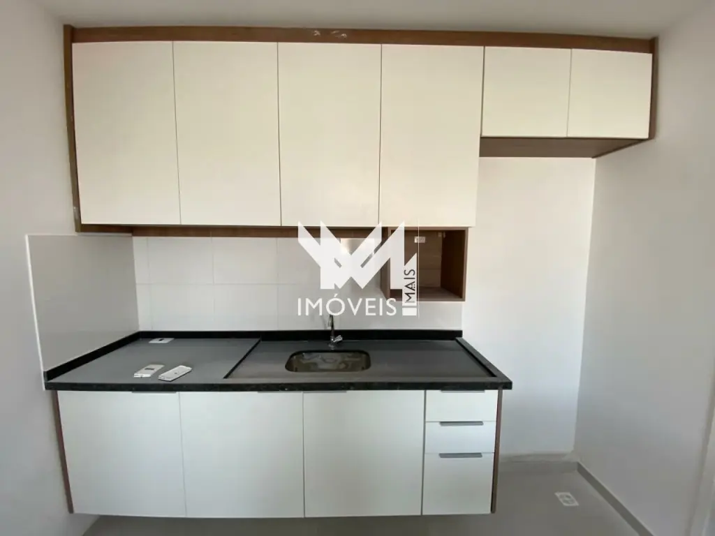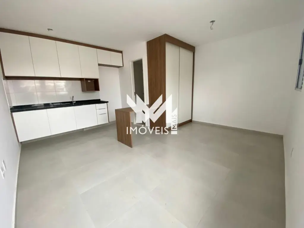 Lindo Studio 24m² semi-mobiliado, todo em porcelanato, cozinha equipada com armários e fogão cooktop por indução, divisória em madeira carnaúba com armário para o loft. Banheiro com pia e gabinete. Studio novo recém entregue, com Lavanderia coletiva e aceita Pet's.