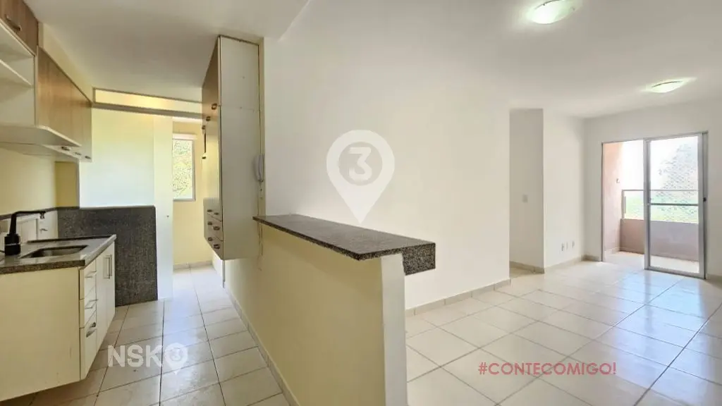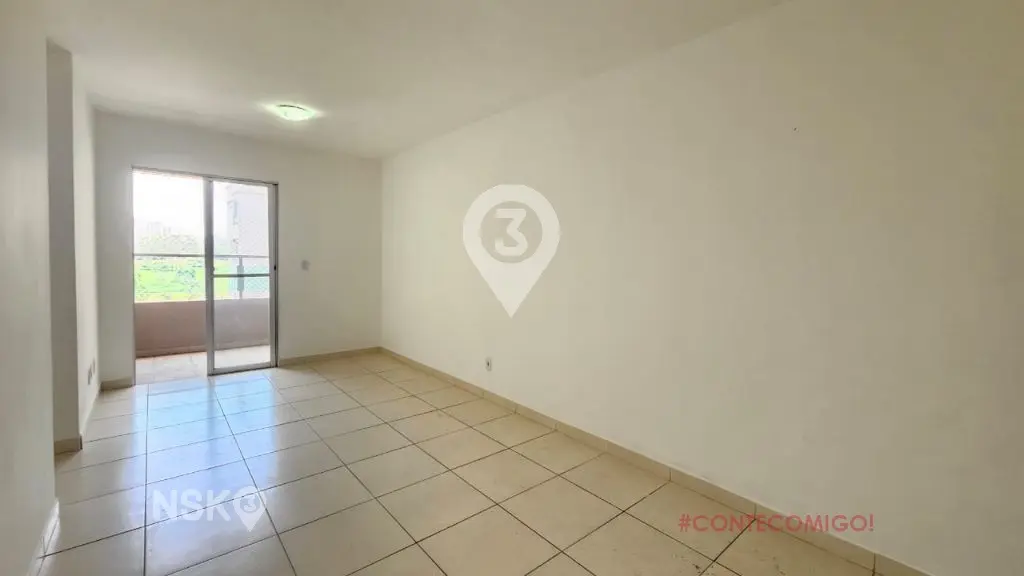 Apartamento 3 Quartos sendo 1 Suíte, banheiro social, sala para até 2 ambientes com uma varanda, cozinha com gabinete e área de serviços.