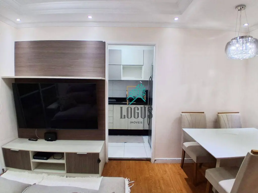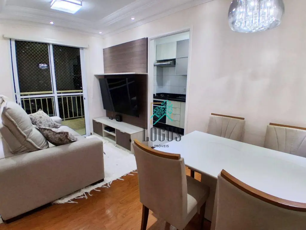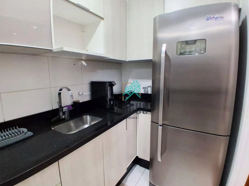 Possui sala 2 ambientes com sacada, cozinha planejada, área de serviço com armário, 2 dormitórios sendo os 2 planejados, 1 WC com box, chuveiro e gabinete e 1 vaga de garagem.