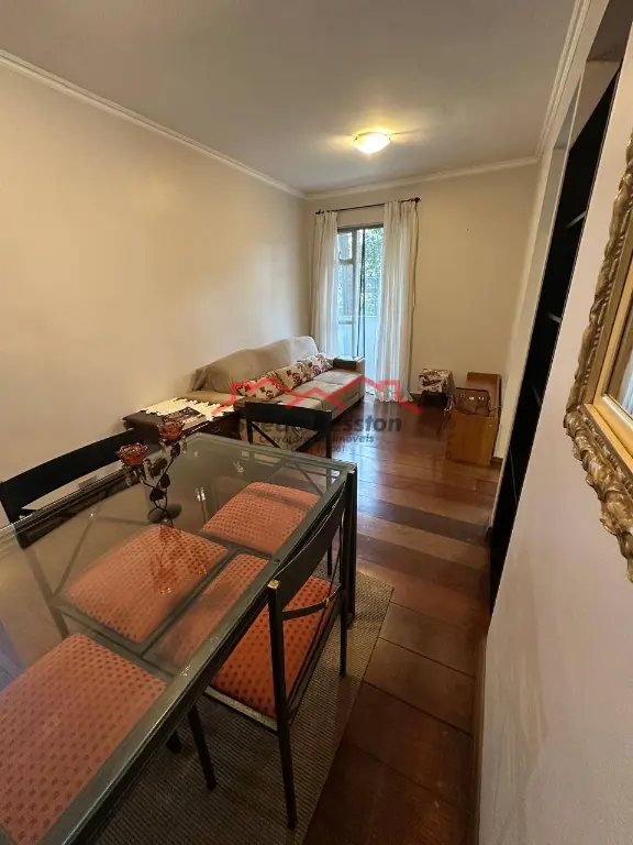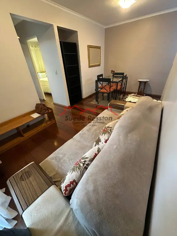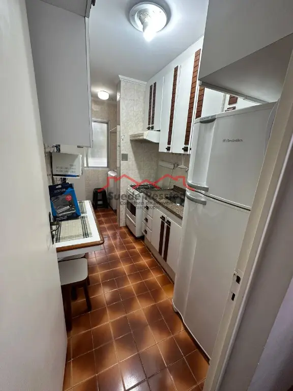 Apartamento 2 dormitórios mobiliado com armários embutidos. Este imóvel possui uma sala para 2 ambientes. A cozinha planejada, um show de organização, está repleta de armários, cama, sofá, geladeira, mesa, rack, fogão e etc.