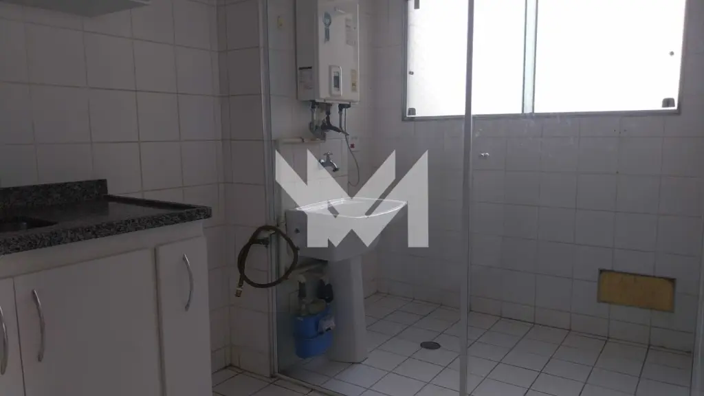 Apartamento com 3 quartos sendo 1 suíte, sala com varanda, cozinha com armário, banheiro, área de serviço e 2 vagas de garagem.