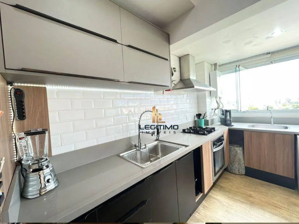 Piso em porcelanato, acabamento em granito, planejados na cozinha, área de serviço e lavanderia, living integrado com a varanda, 1 dormitório privativo, todo em armários.