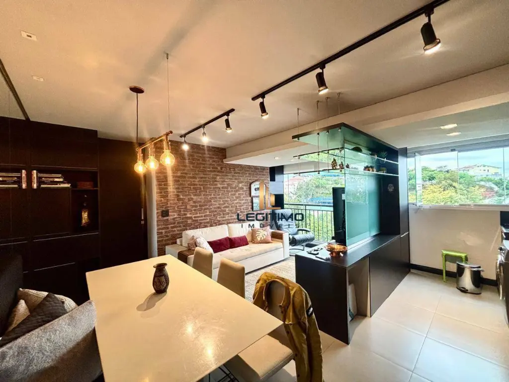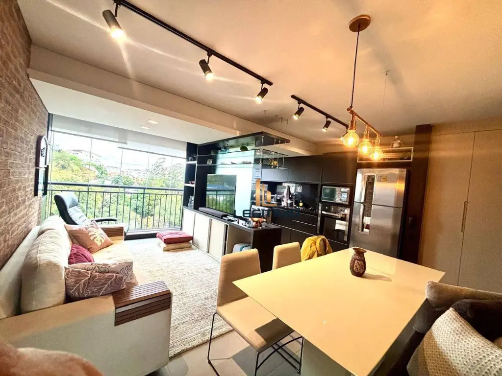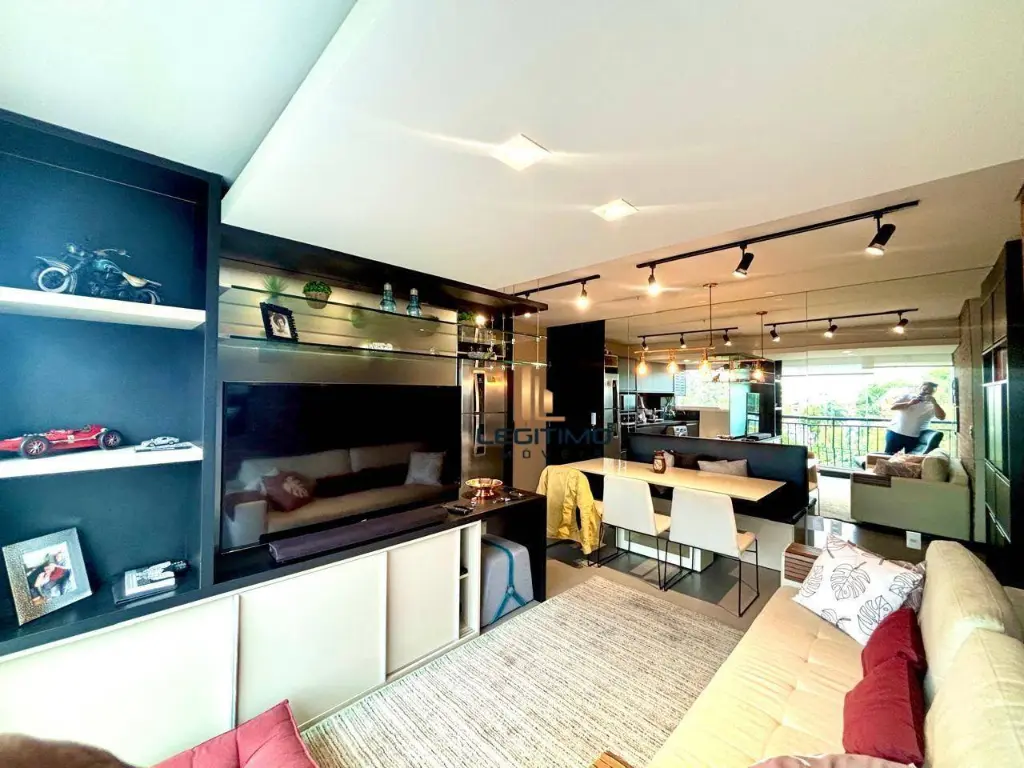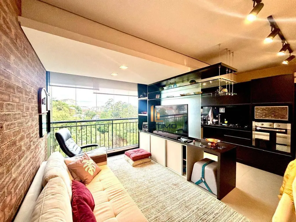 O imóvel possui ótimo acabamento, piso em porcelanato, armários planejados em todos os ambientes, cozinha completa com eletrodomésticos e sacada integrada com cortina de vidro, oferecendo mais conforto e espaço.