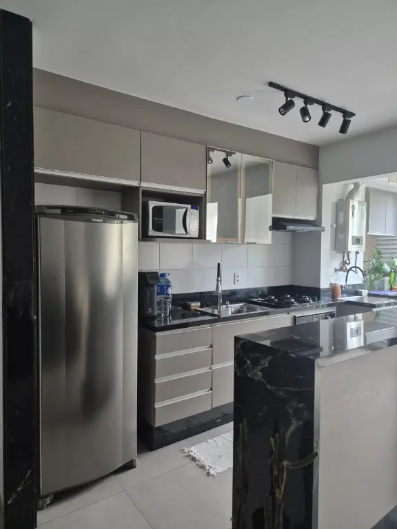 2 dormitórios sendo 1 suíte, 2 salas, 2 banheiros, 1 vaga Coberta