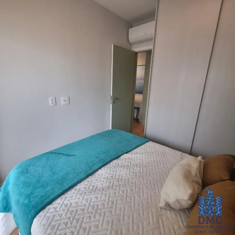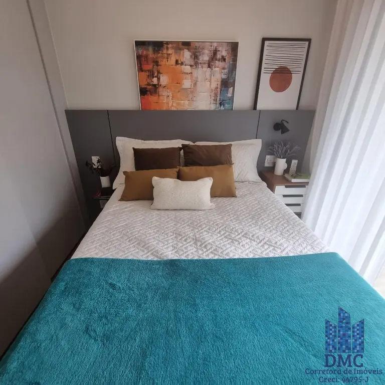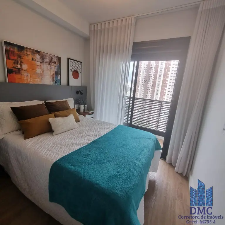 Apartamento localizado no décimo segundo andar com boa ventilação e luminosidade. Possui: dormitório, lavabo, banheiro social, living integrado com cozinha e a varanda com extensão pelo dormitorio e área de serviço.