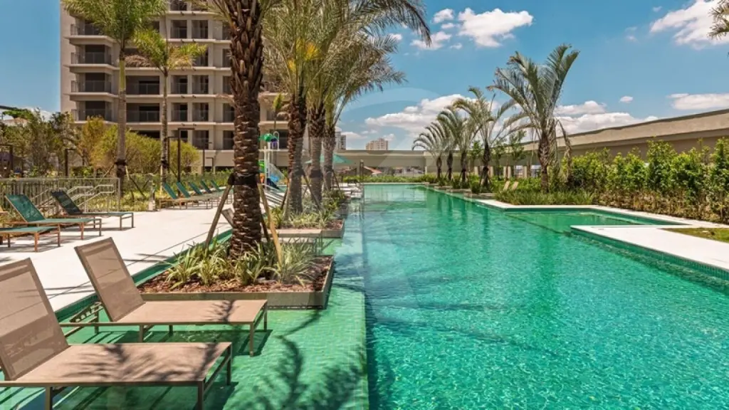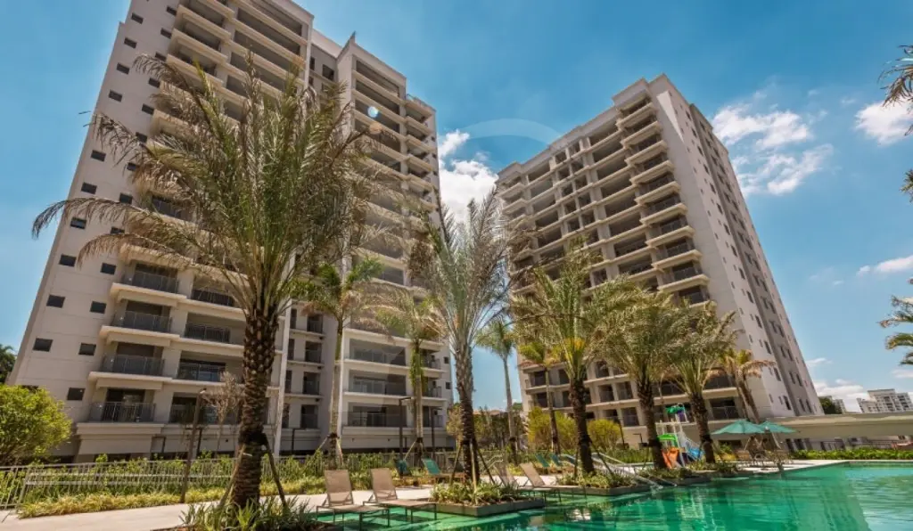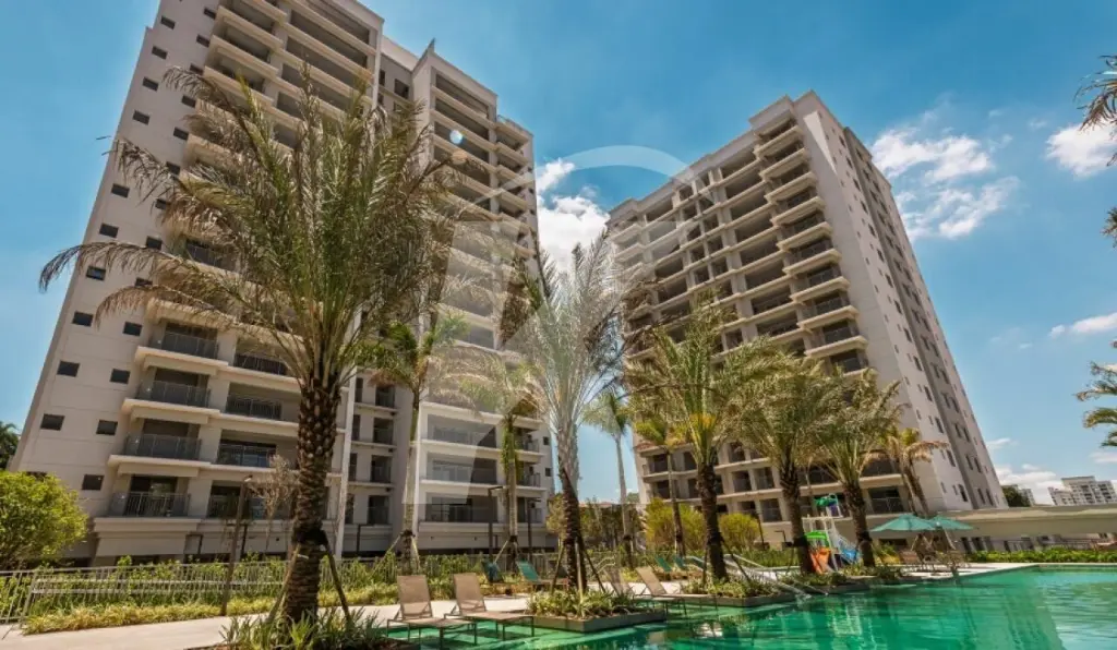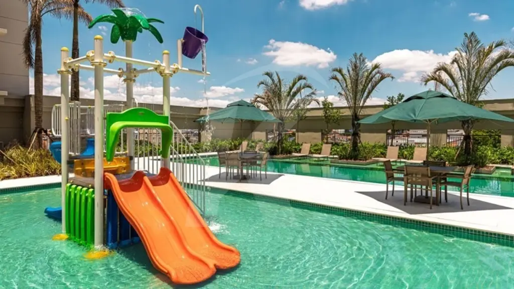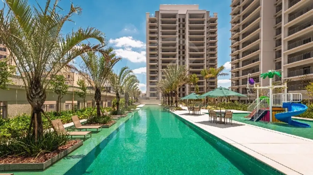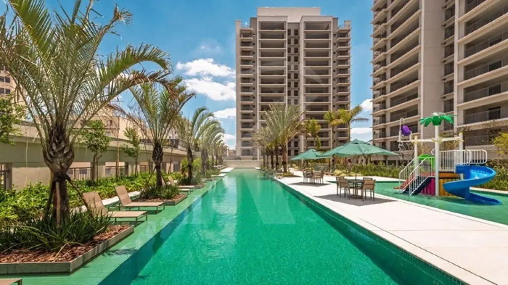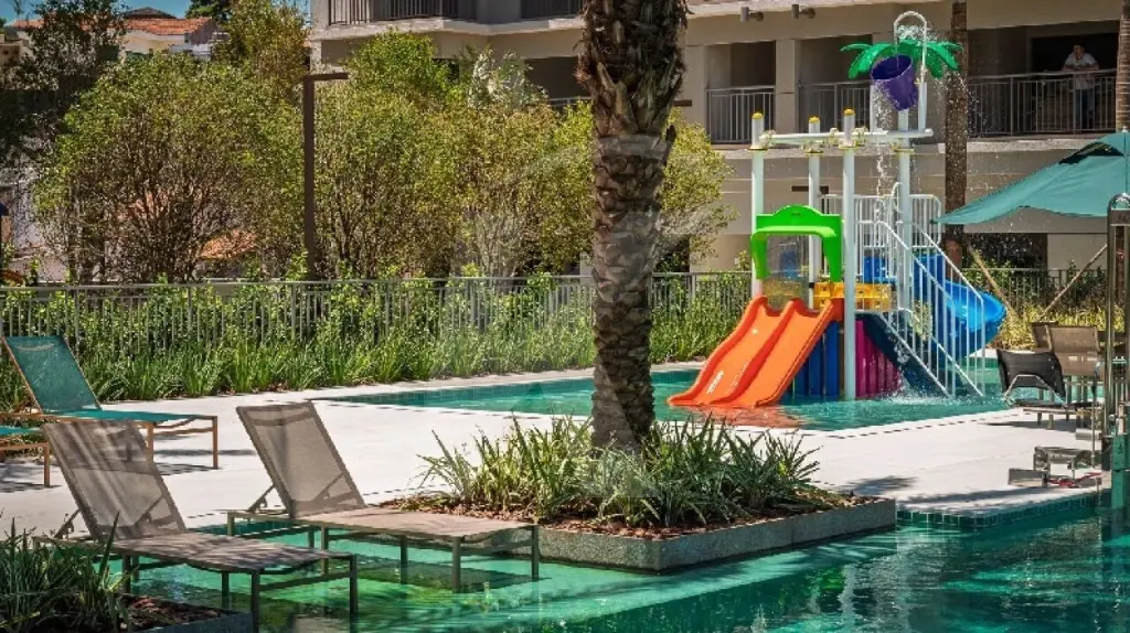 A unidade possui vista privilegiada para o parque aquático do condomínio.